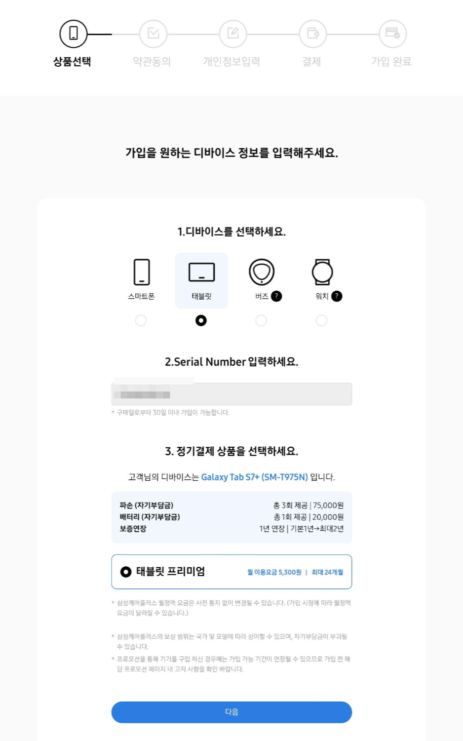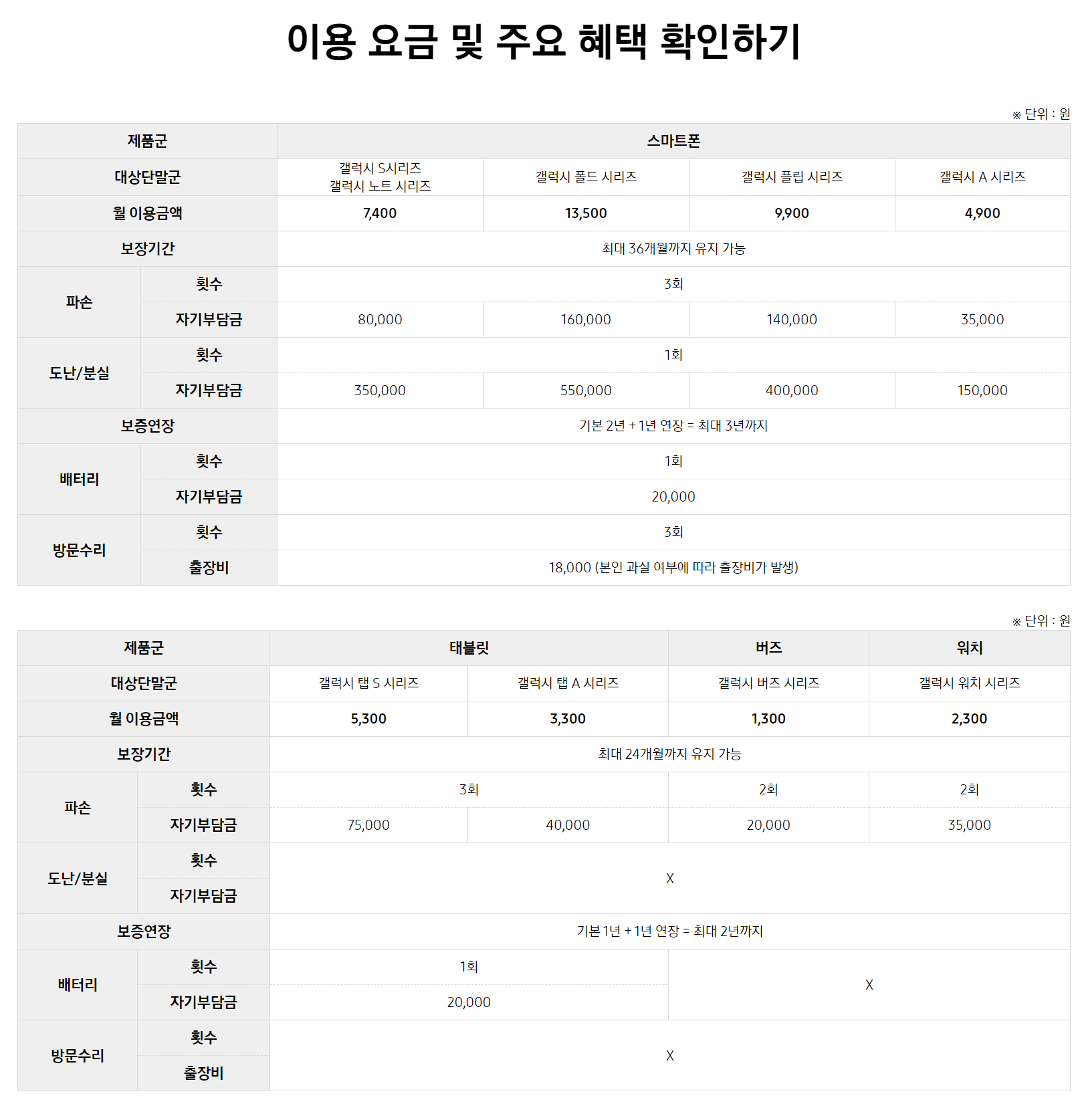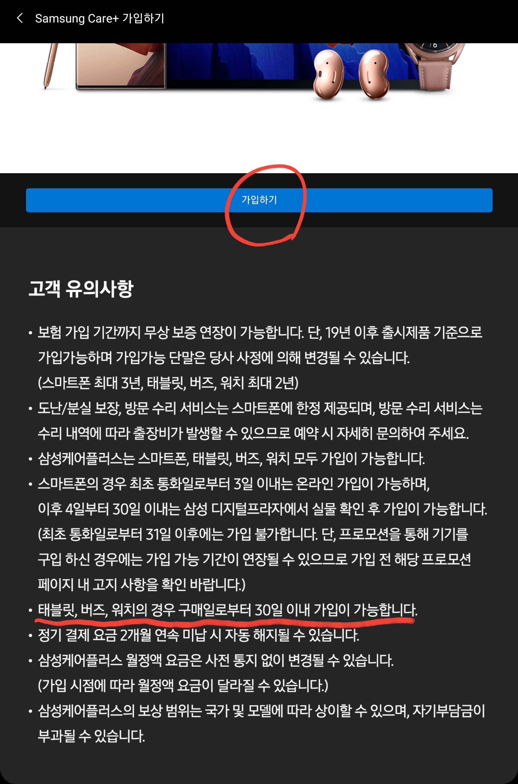 태블릿, 버즈, 워치의 경우 구매일로부터 30일 이내 가입이 가능하다