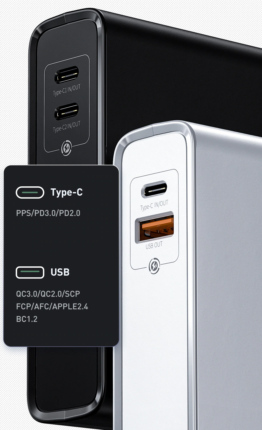 Type-C1 + 유형 C2 전체 출력: 30W + 15W 또는 15W + 30W