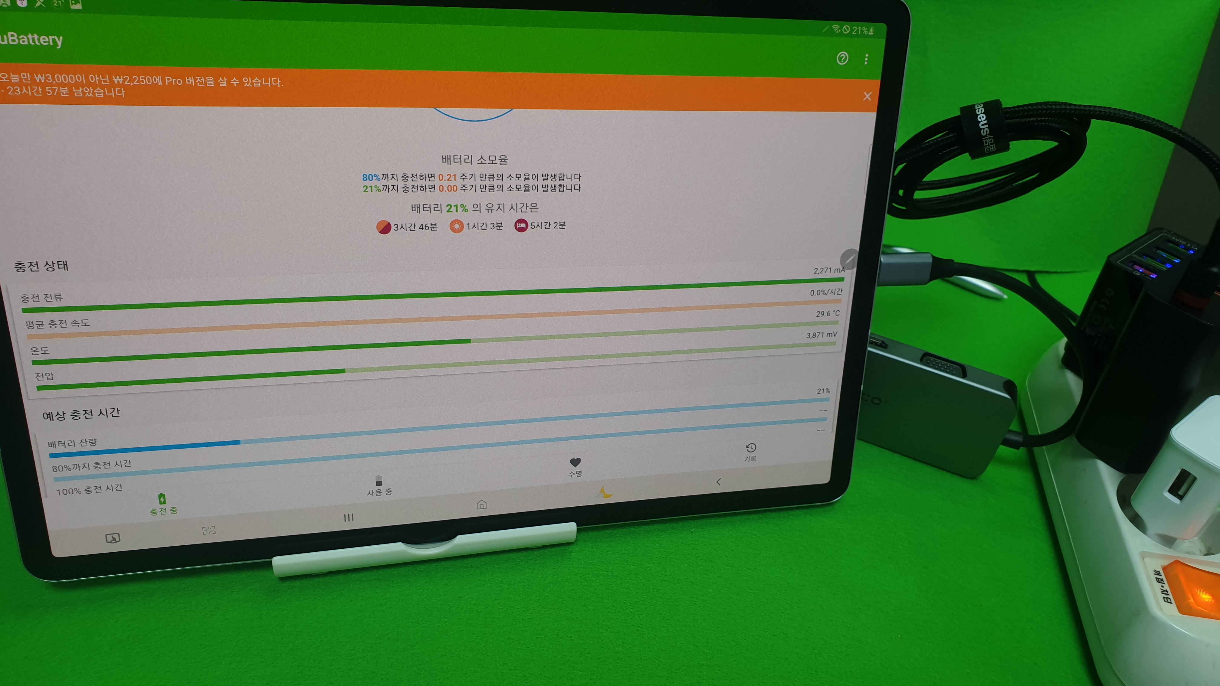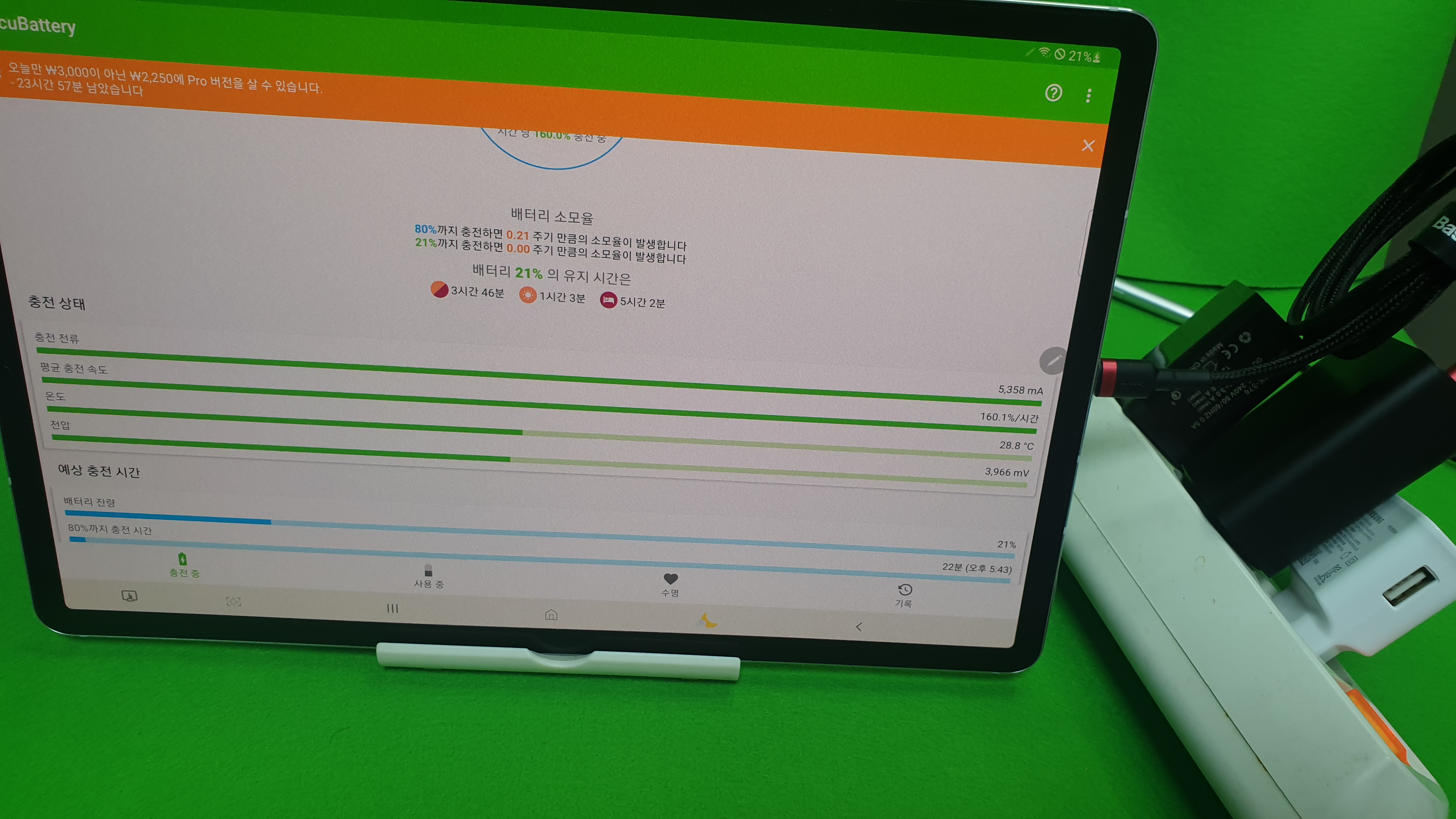 하지만 1만 용량을 자랑하는 탭S7+의 배터리를 1시간 정도로