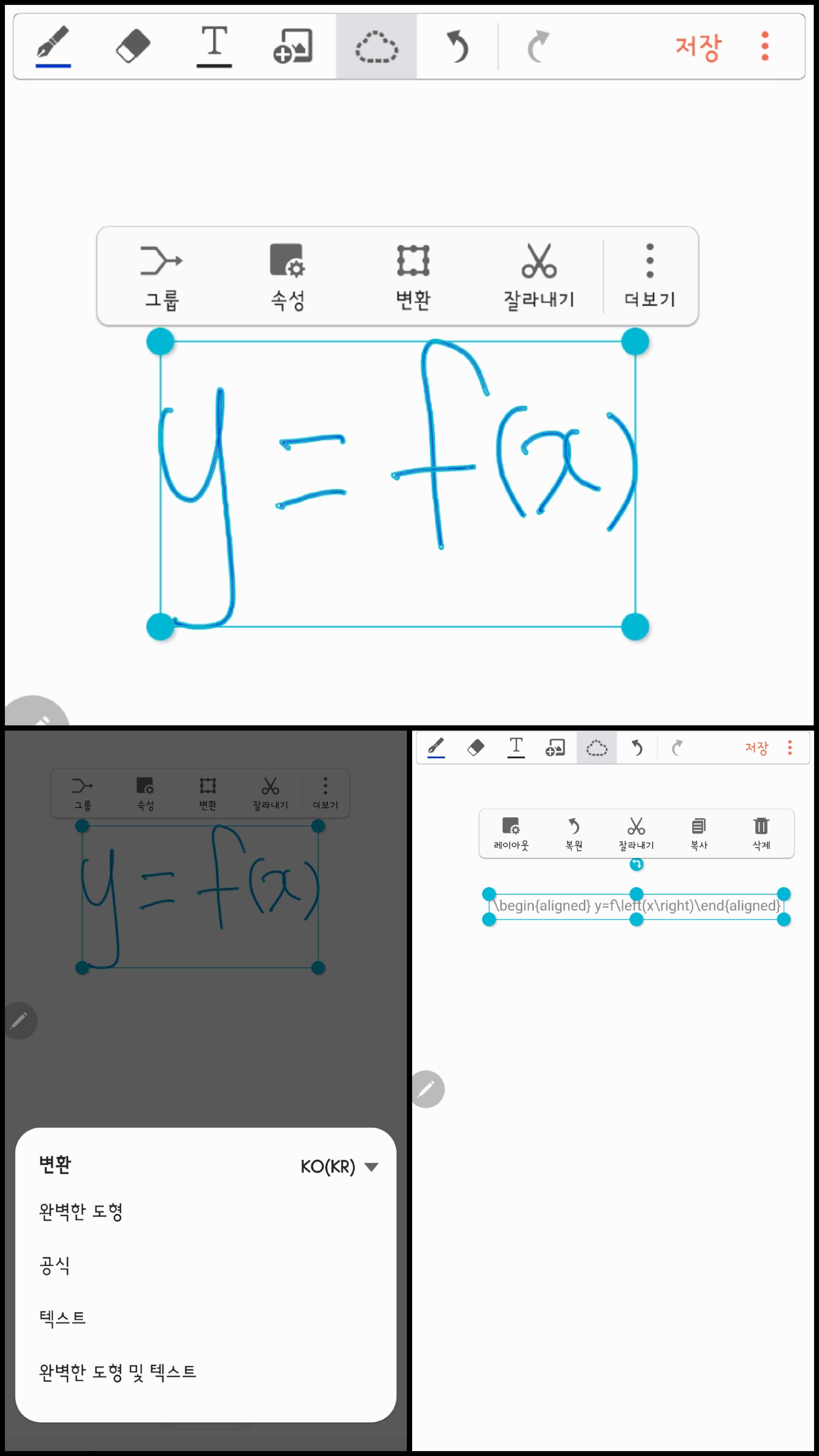 삼성노트에서는 볼 수 없는 '공식' 이라는 메뉴가 뜬다.