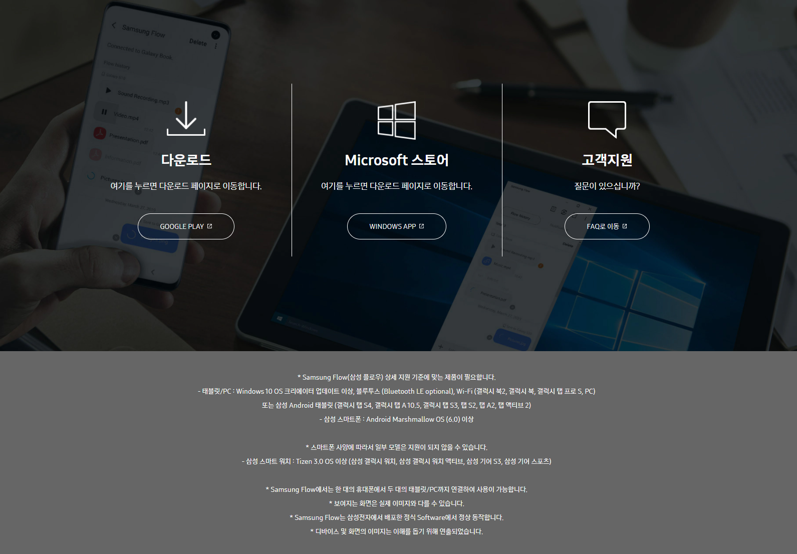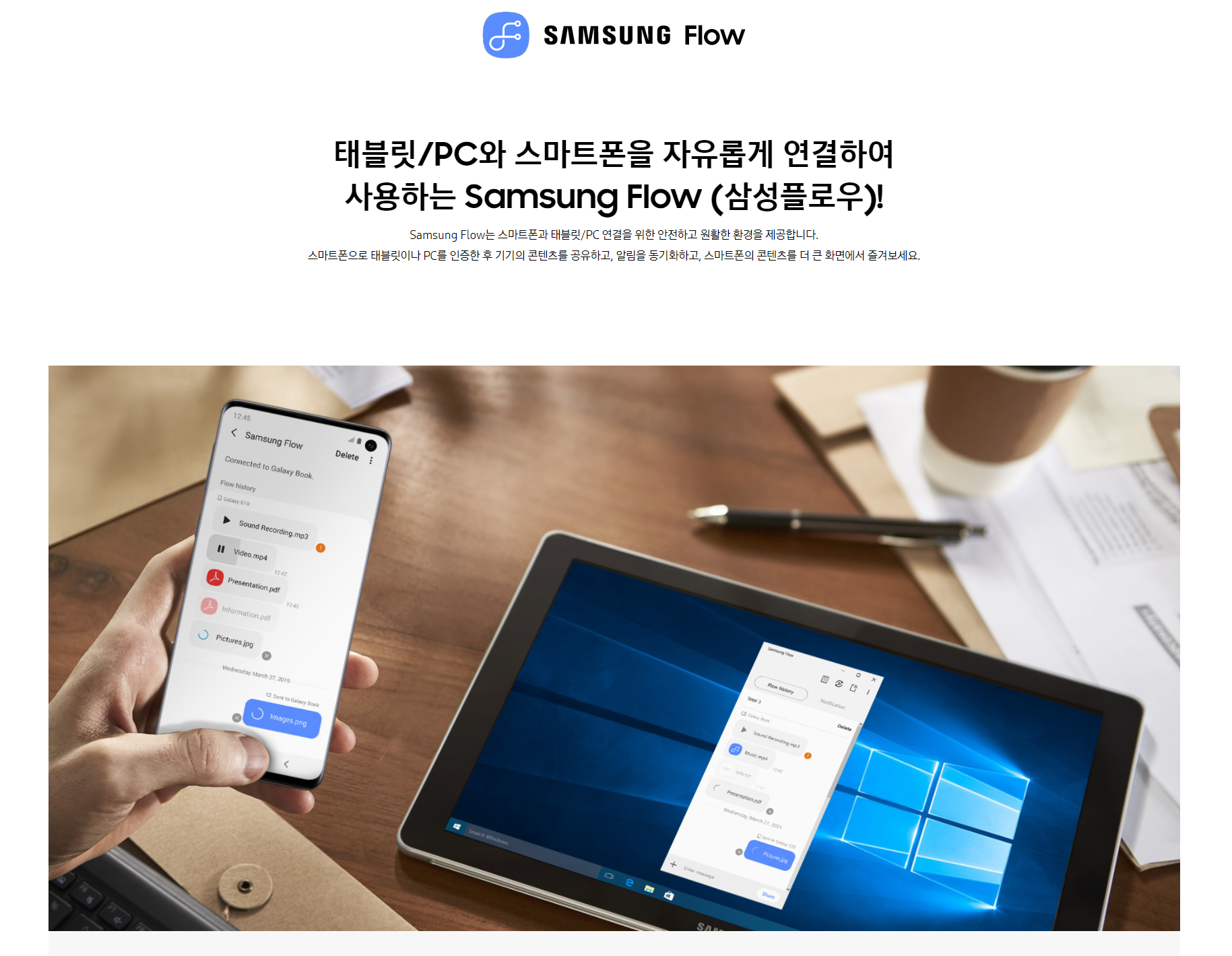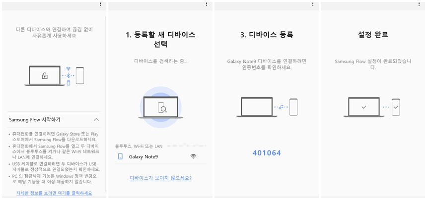 - 휴대폰 삼성 플로우를 먼저 실행해놓은 다음 PC나 태블릿을 실행해야 한다 .