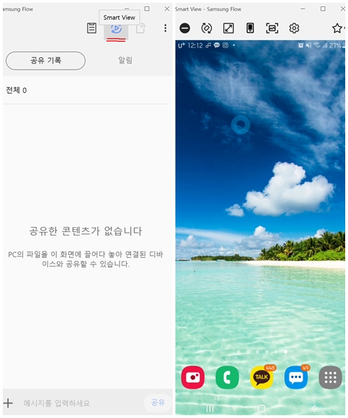 그런데 삼성 플로우의 스마트 뷰 기능을 이용한다면..