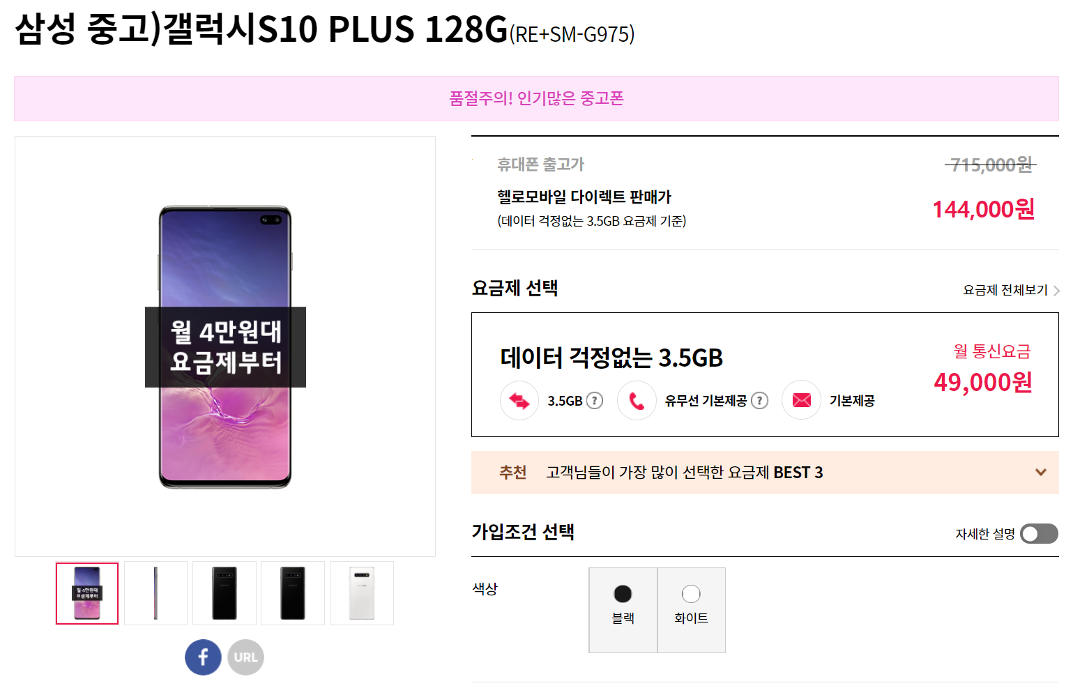 헬로 모바일의 경우에는... 그래도 S10 중고가가 715000원이라서 다행...