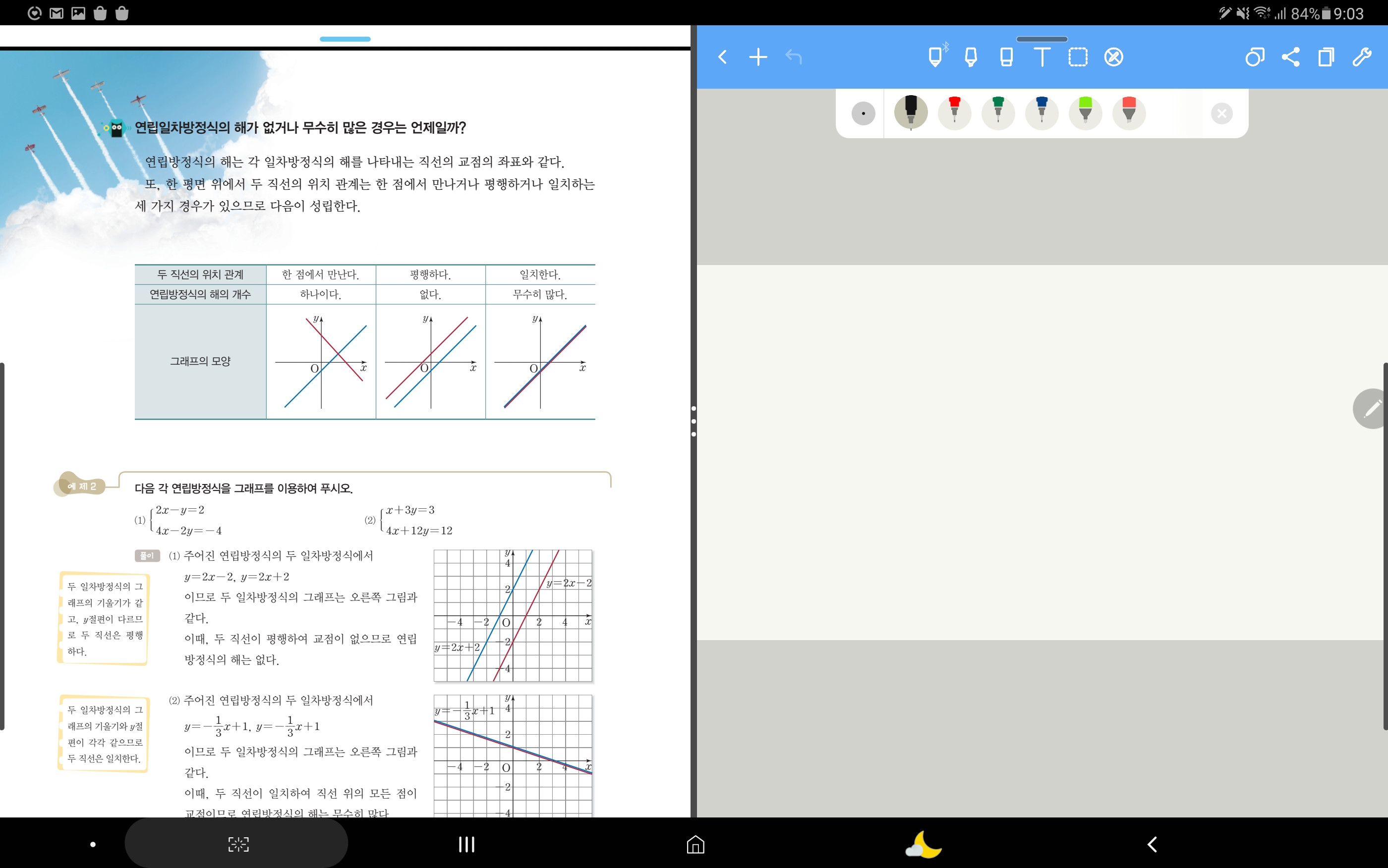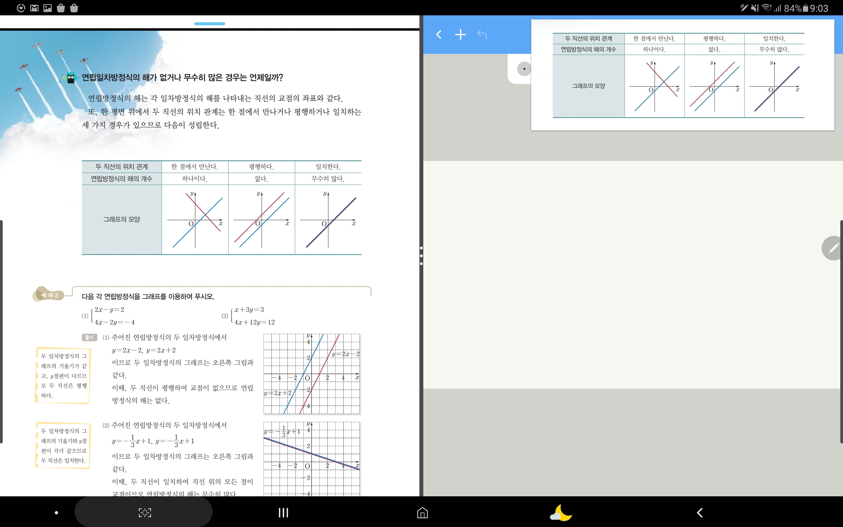 태블릿을 호스트로 하여 화면 공유로 수업을 하기 때문에