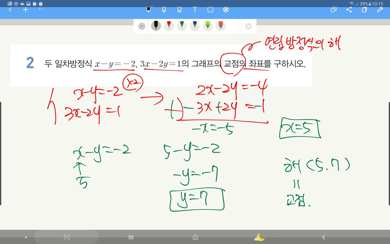 교과실의 전자칠판을 이용하여 책에다 필기해주듯 중요내용을 필기해준다.