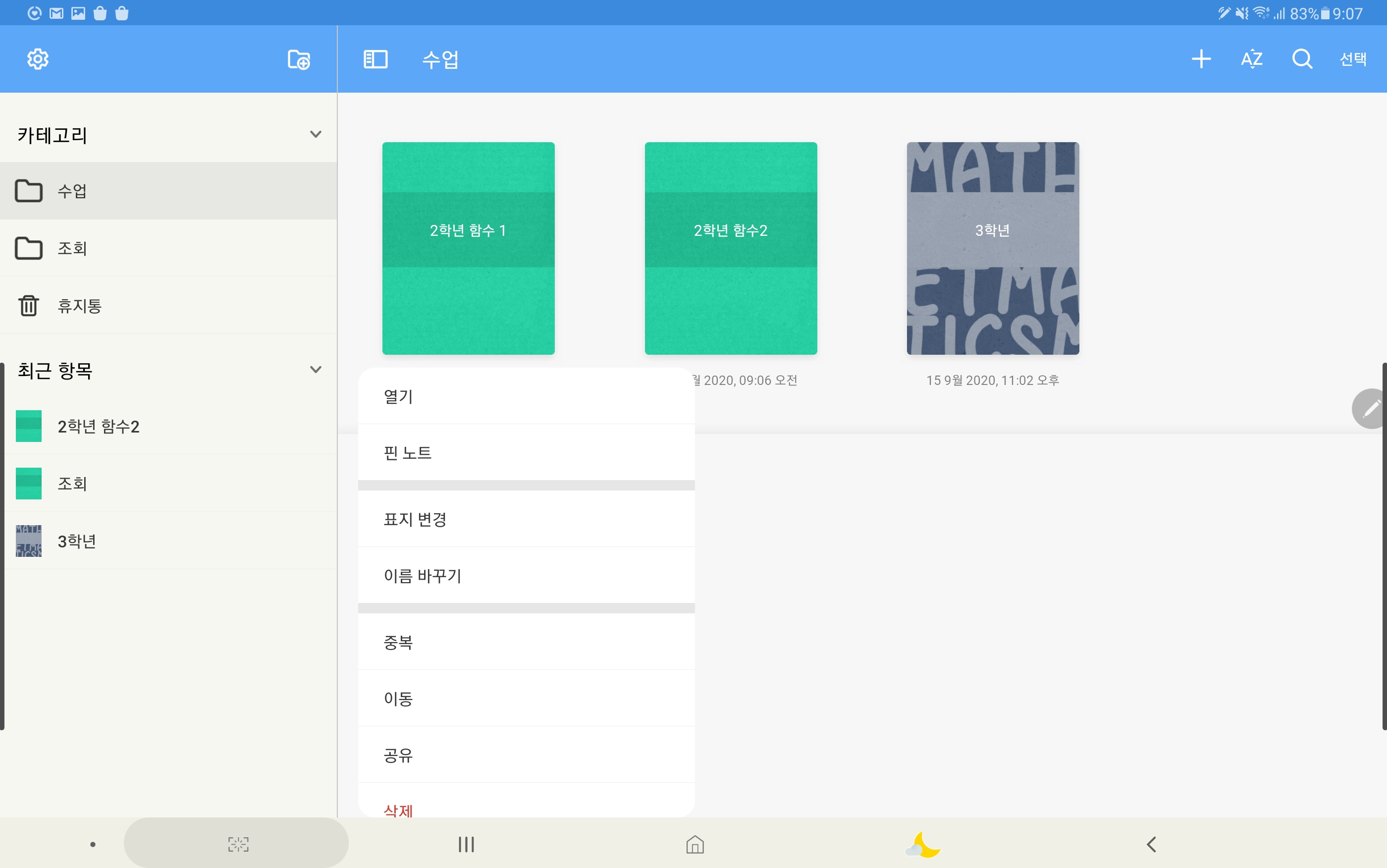 일단 노트 쉘프로 준비하고 실시한 모든 과정은 삼성노트에서도 동일하게 사용할 수 있다.