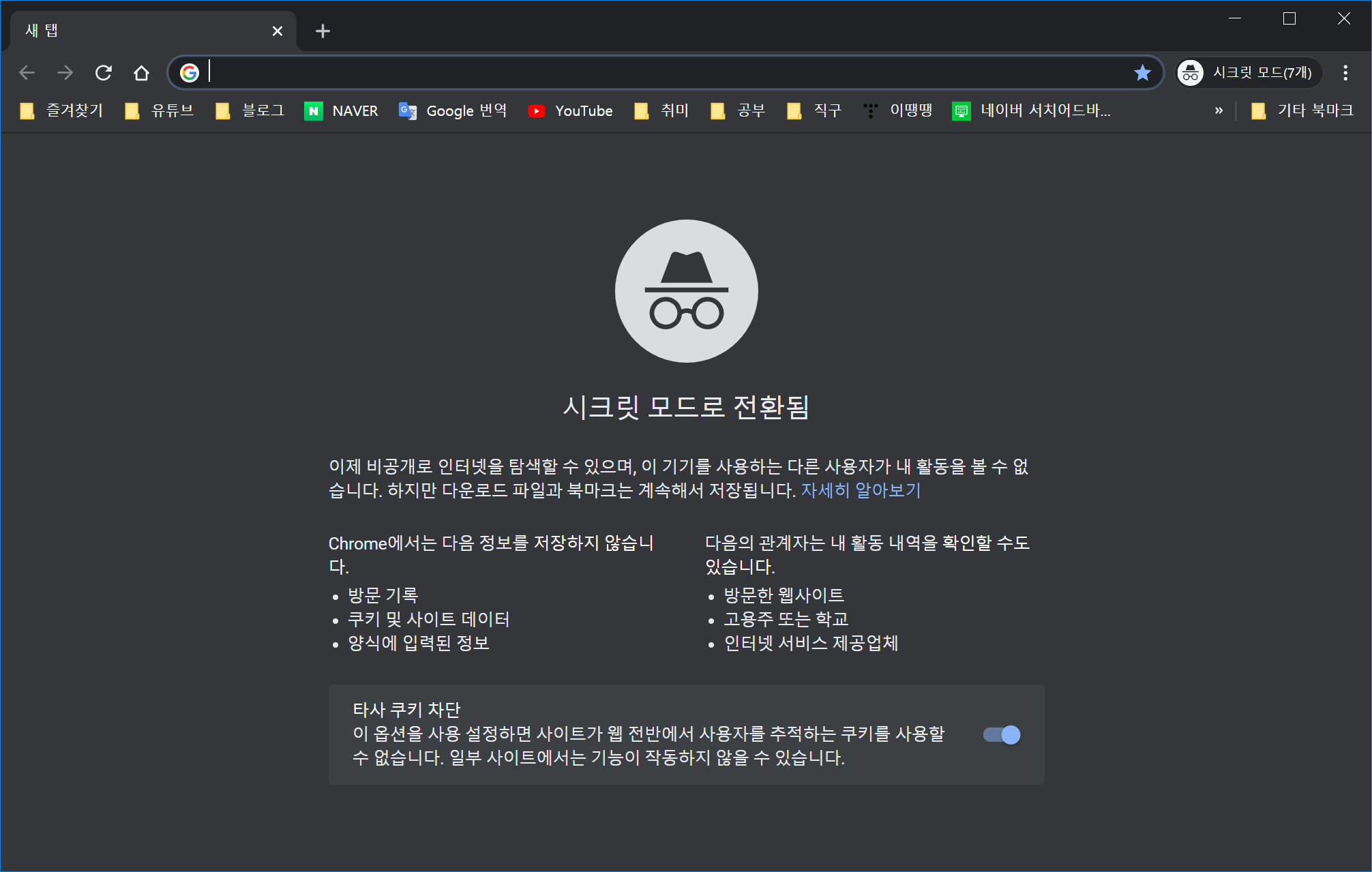 [Ctrl + Shift + N]을 누르면 시크릿 모드가 활성화 된다.