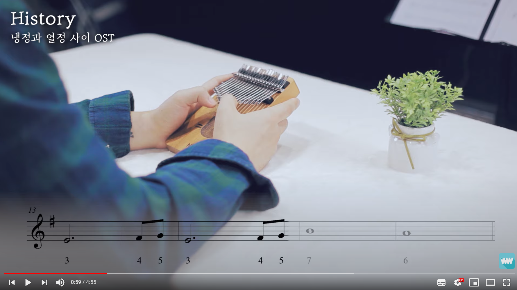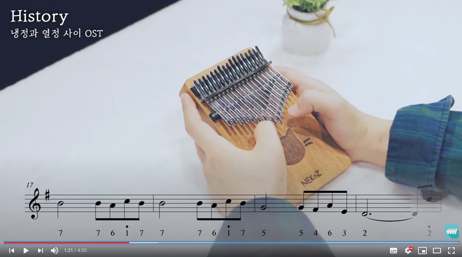 위키위키님의 유튜브 영상이고 악보가 하단에 나오며