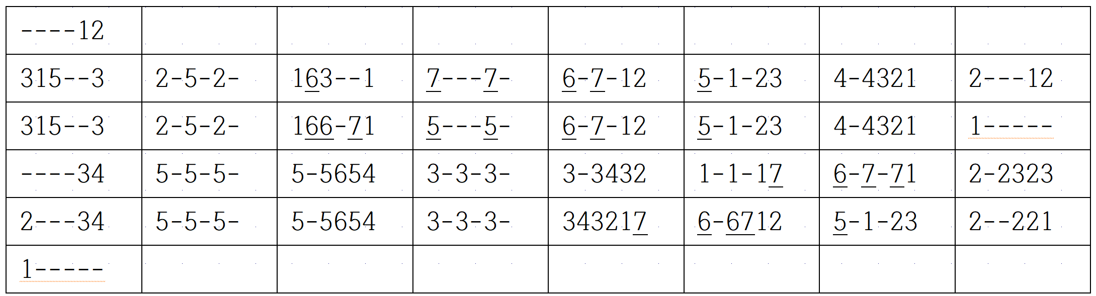 숫자 하나당 8분 음표 하나로 기억하고 연주를 한다.