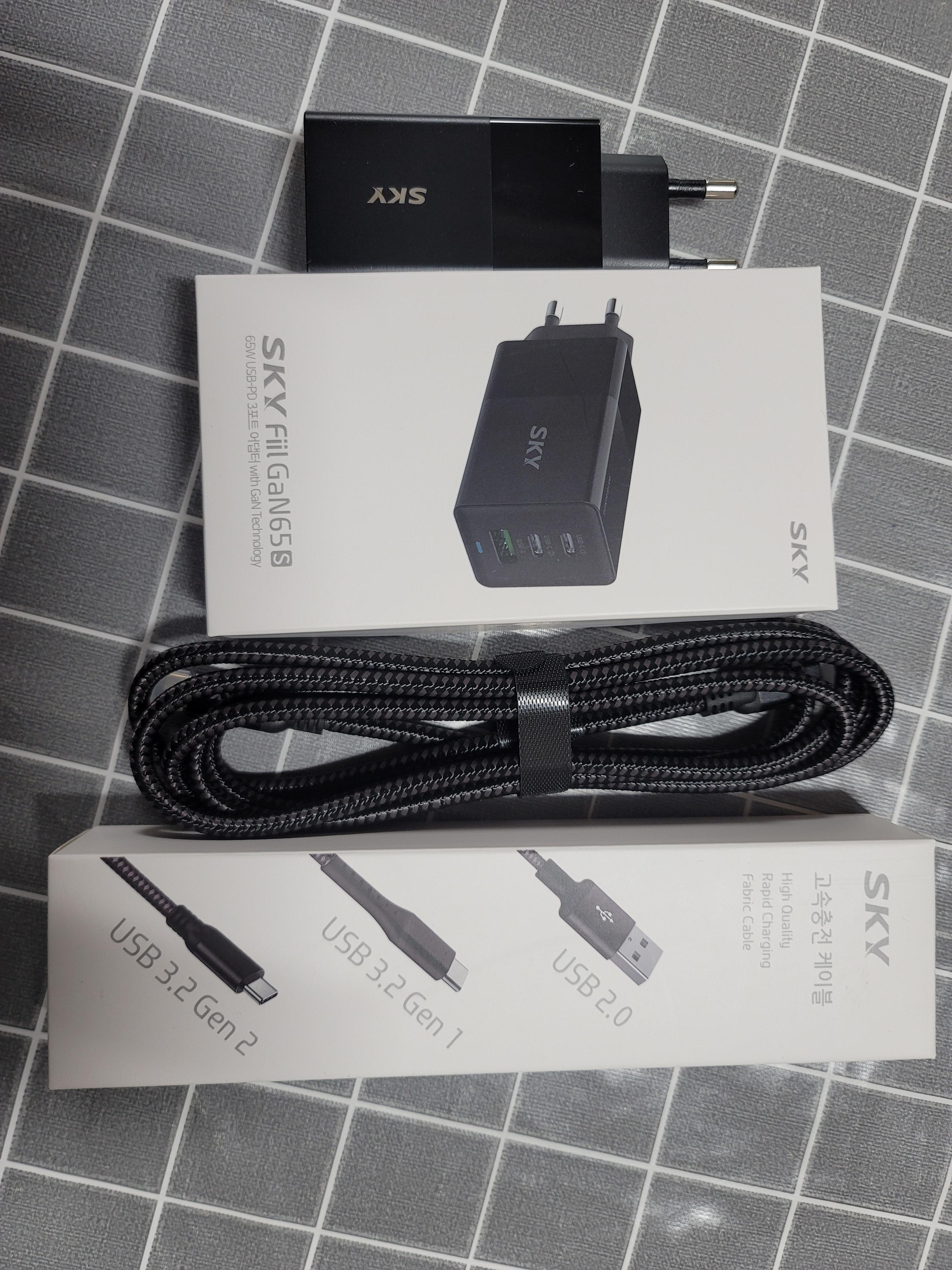 결론: 스카이 디지털에서 구매한 충전기와 케이블... 어댑터를 대체해서 휴대용으로 쓰기 좋은 것이라 생각