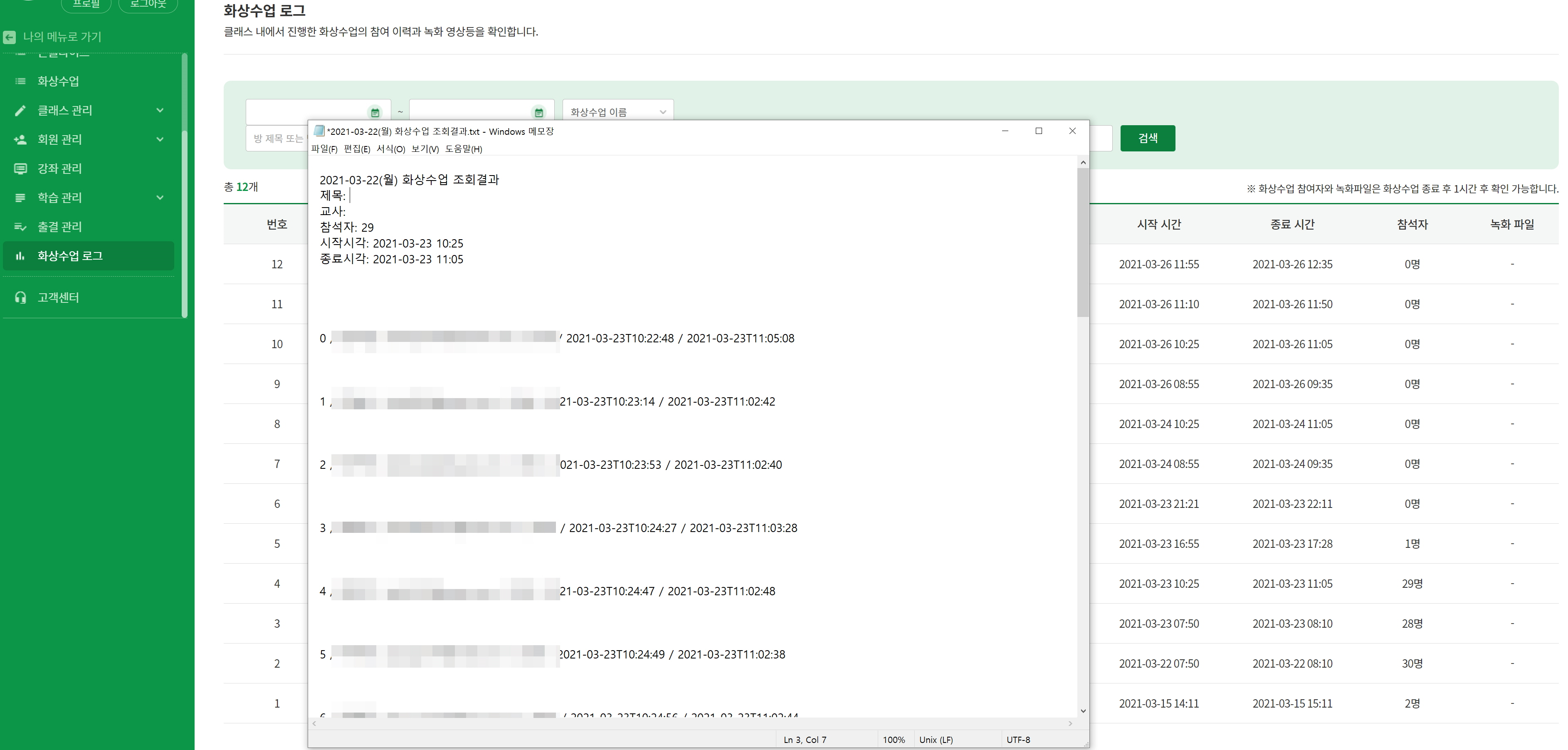 접속시간, 강의 수강시간 등이 정확히 표시가 안 되었고