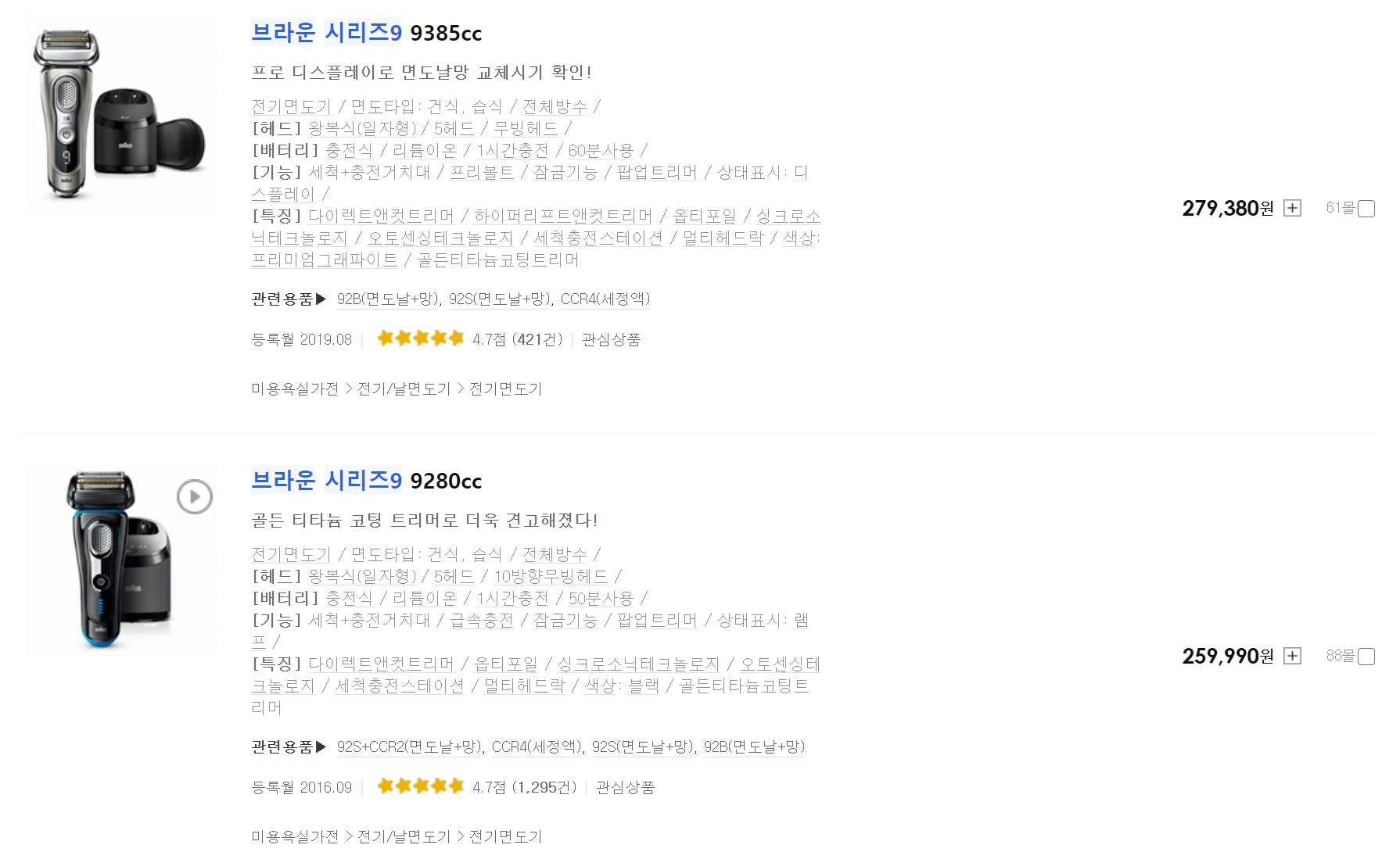 사실 이번에는 세척기능 없는 브라운을 찾아보다가