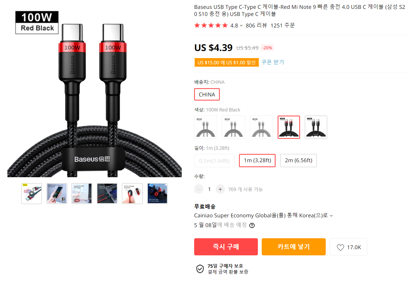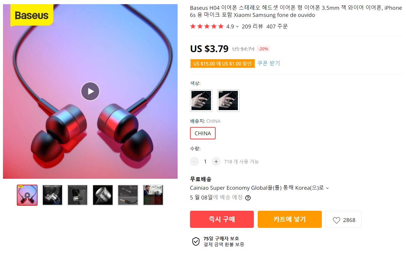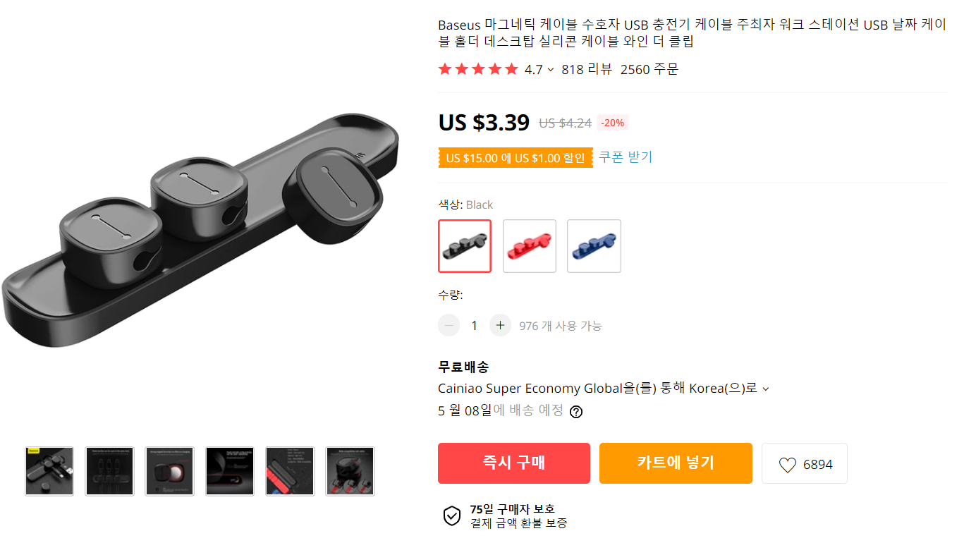 개인적으로 알리에서 Baseus는 좀 믿고 사는 편입니다.