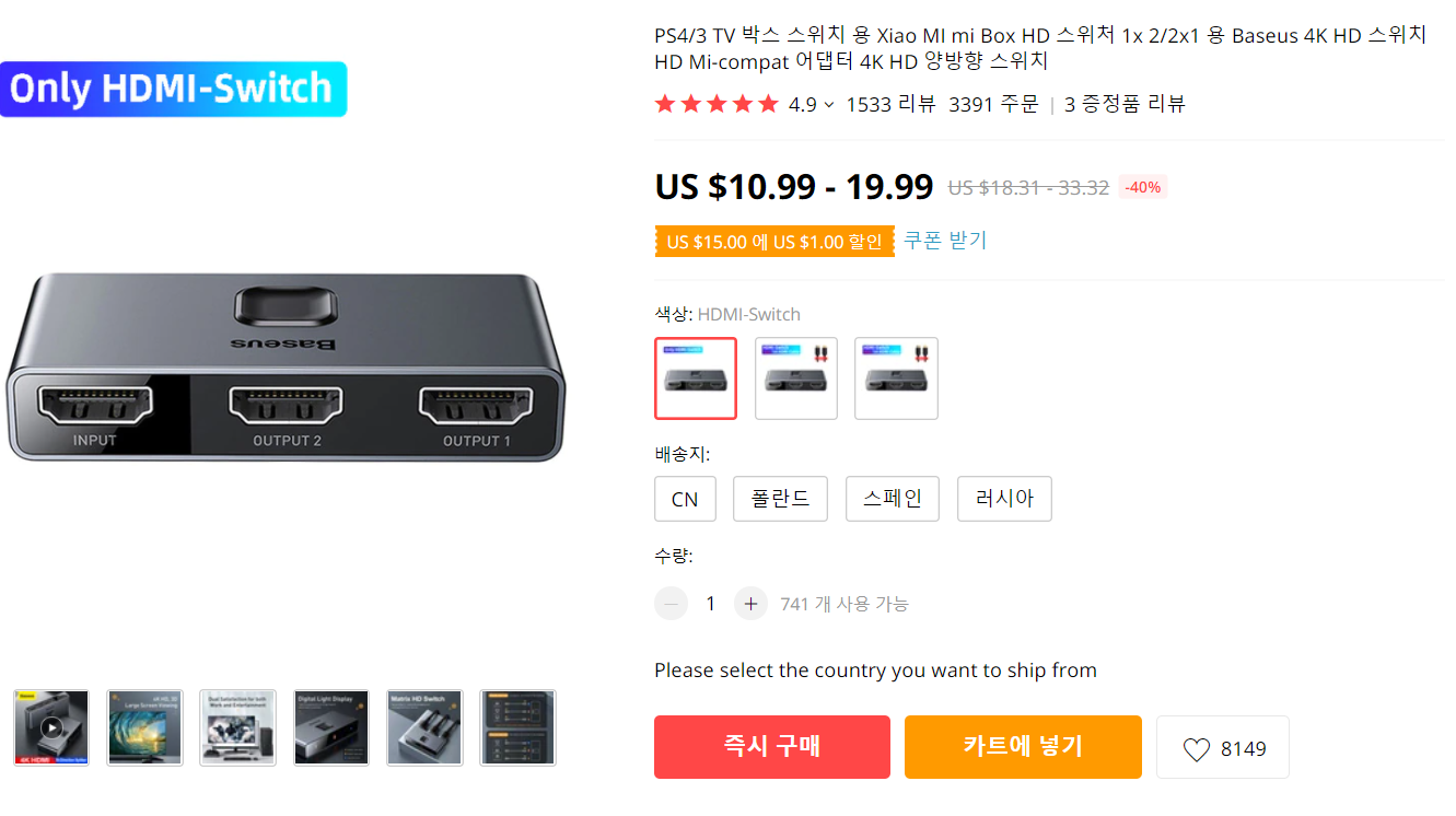 개인적으로 알리에서 Baseus는 좀 믿고 사는 편입니다.