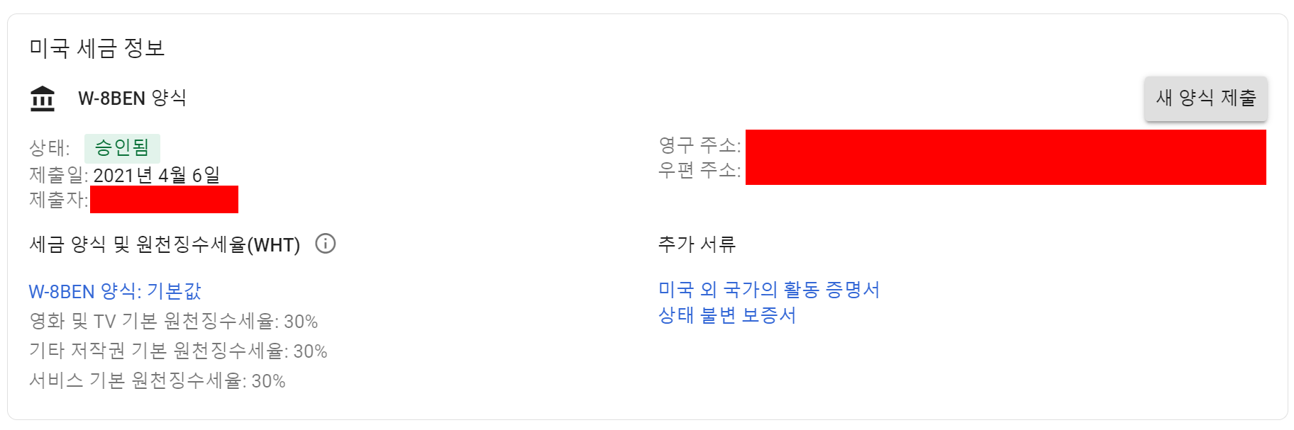 조약상의 혜택(이게 있는 경우 유튜버는 10%. 애드센스는 0%)을 신청하기 위해 필요한 번호