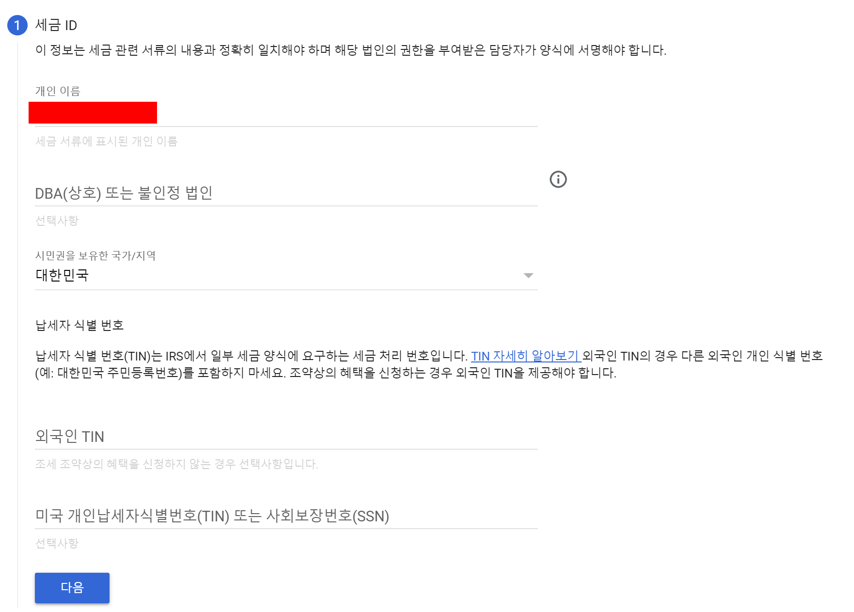 조약상의 혜택(이게 있는 경우 유튜버는 10%. 애드센스는 0%)을 신청하기 위해 필요한 번호