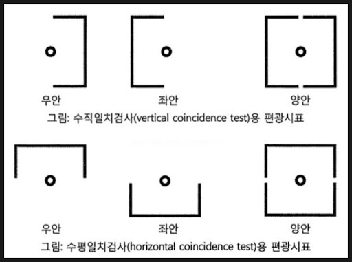 수평일치검사가 검안시에는 아무리 교정해도 약간의 차이가 있었는데