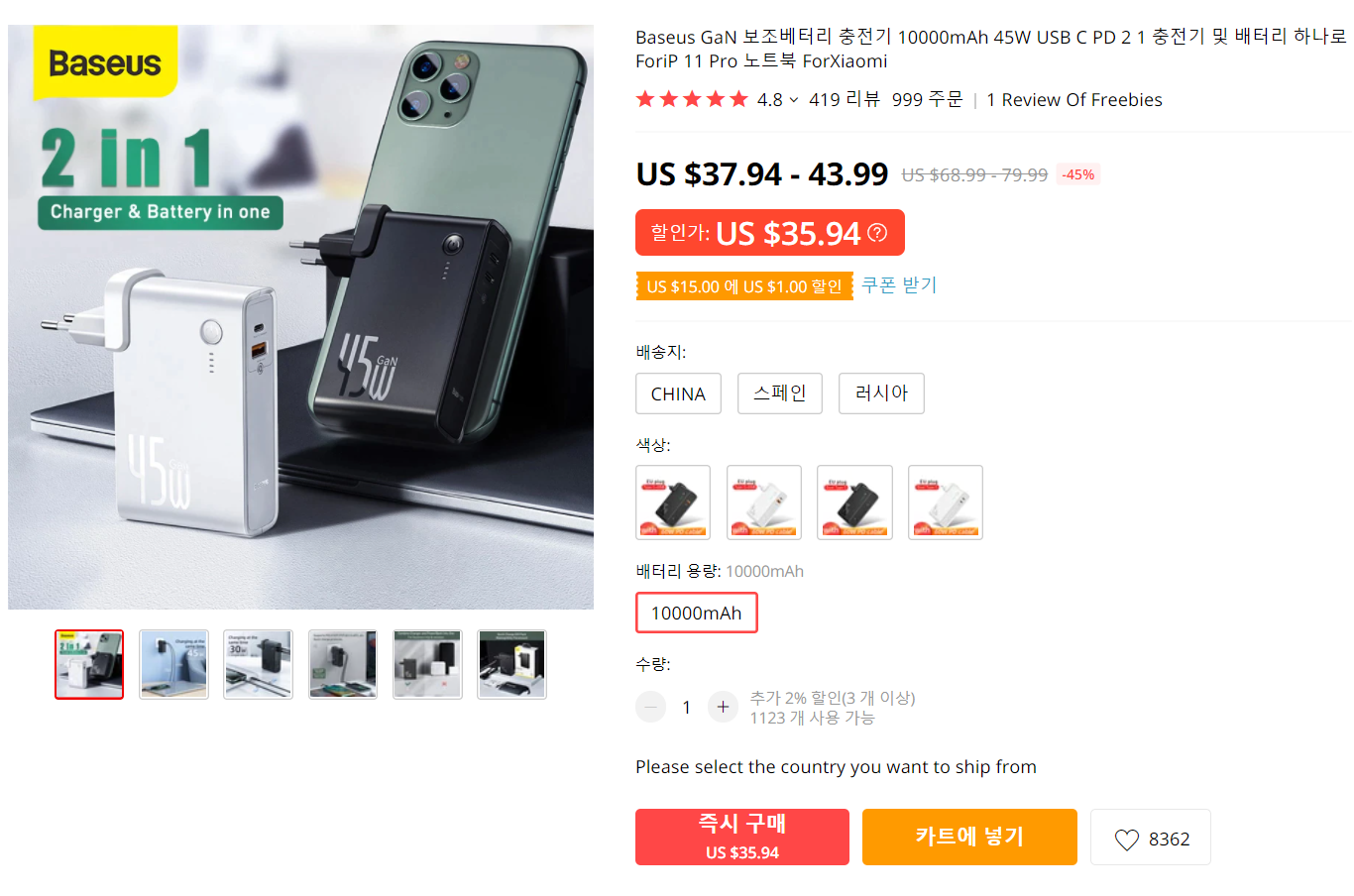 초고속 충전이 가능하다는 것이 매력적!