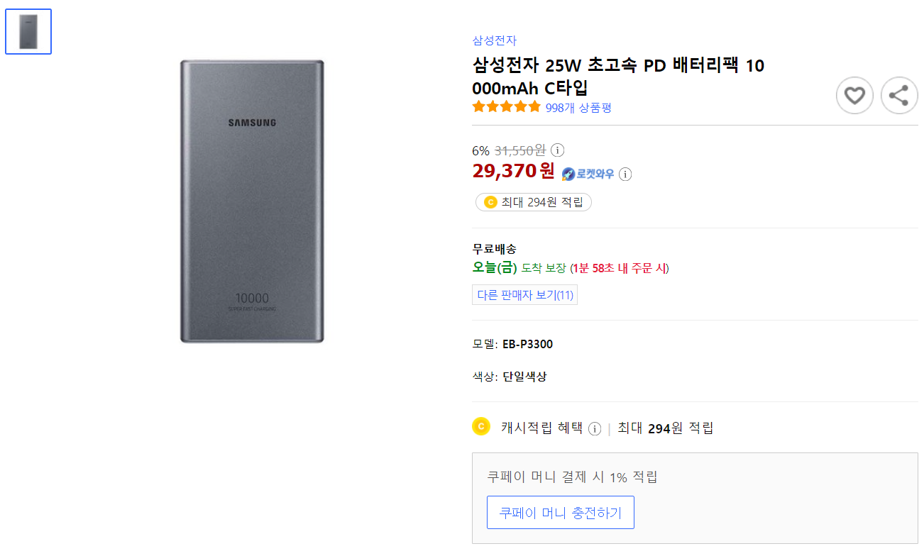 참고: 빅스마일데이 할인해서 필립스 보조배터리 만원 이하로 구매 가능? 좀 땡긴다 ㅋㅋㅋ