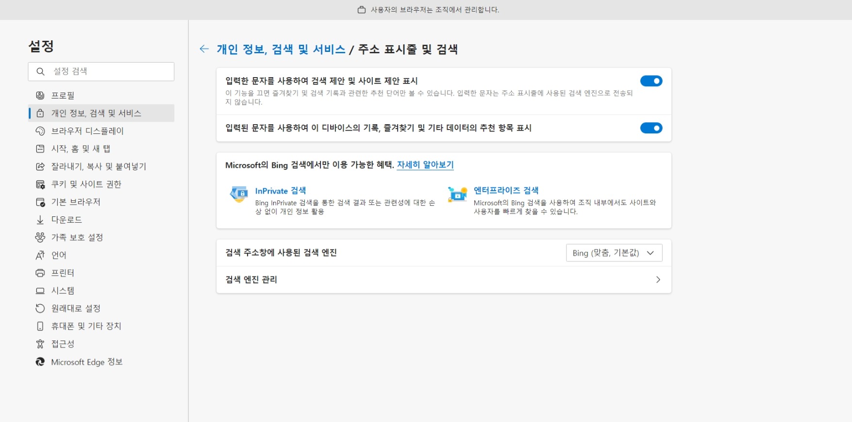 아쉽게도 마이크로소프트의 기본 검색엔진은 Bing...