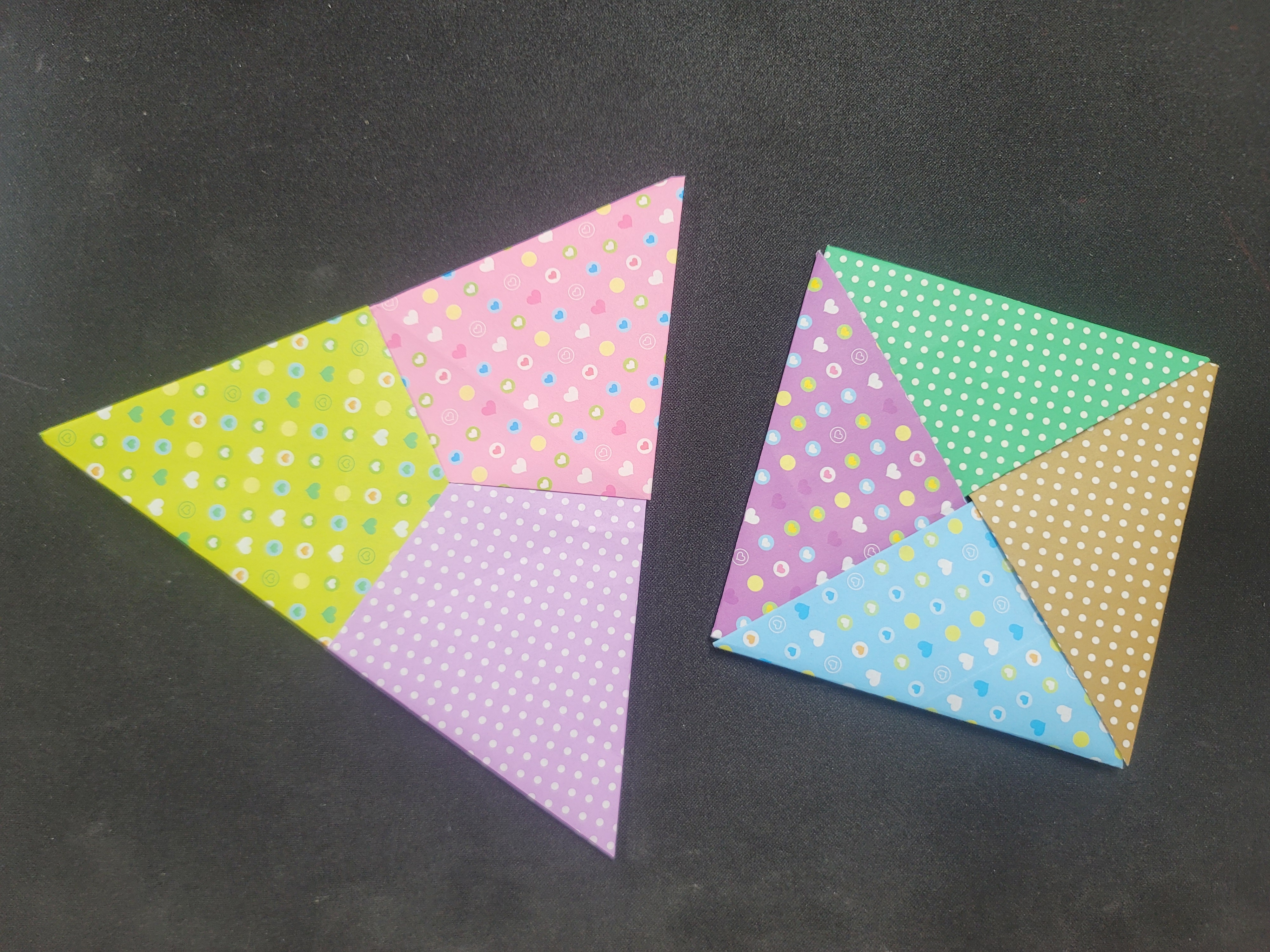 - 종이접기가 숙달된 친구들의 경우 한 시간 안에 두 가지 모양을 모두 접을 수 있습니다.