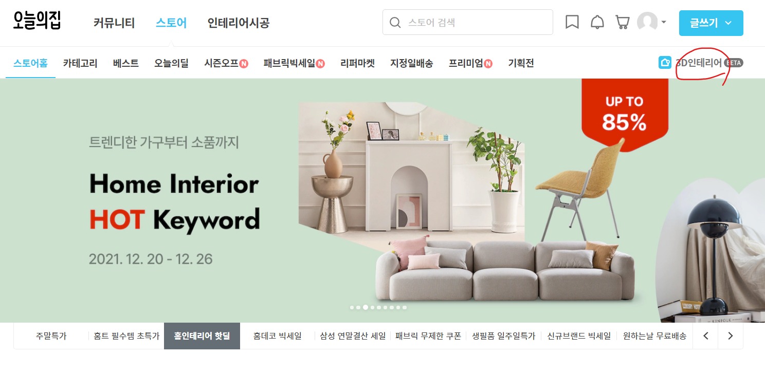 오늘의 집 3D인테리어를 발견하였습니다.