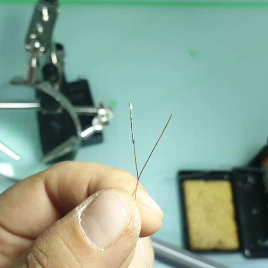 필자는 집게형 스탠드에 핀셋으로 잡아 고정 후 납땜을 시도하였다.