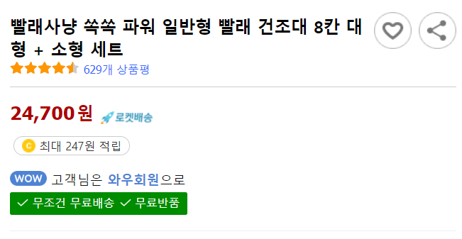 그러면 양말과 속옷, 바지, 수건을 걸건데 너무 건조대가 큰건 아닐까? 하는 고민에 검색해보다가 알게 된 빨래사냥