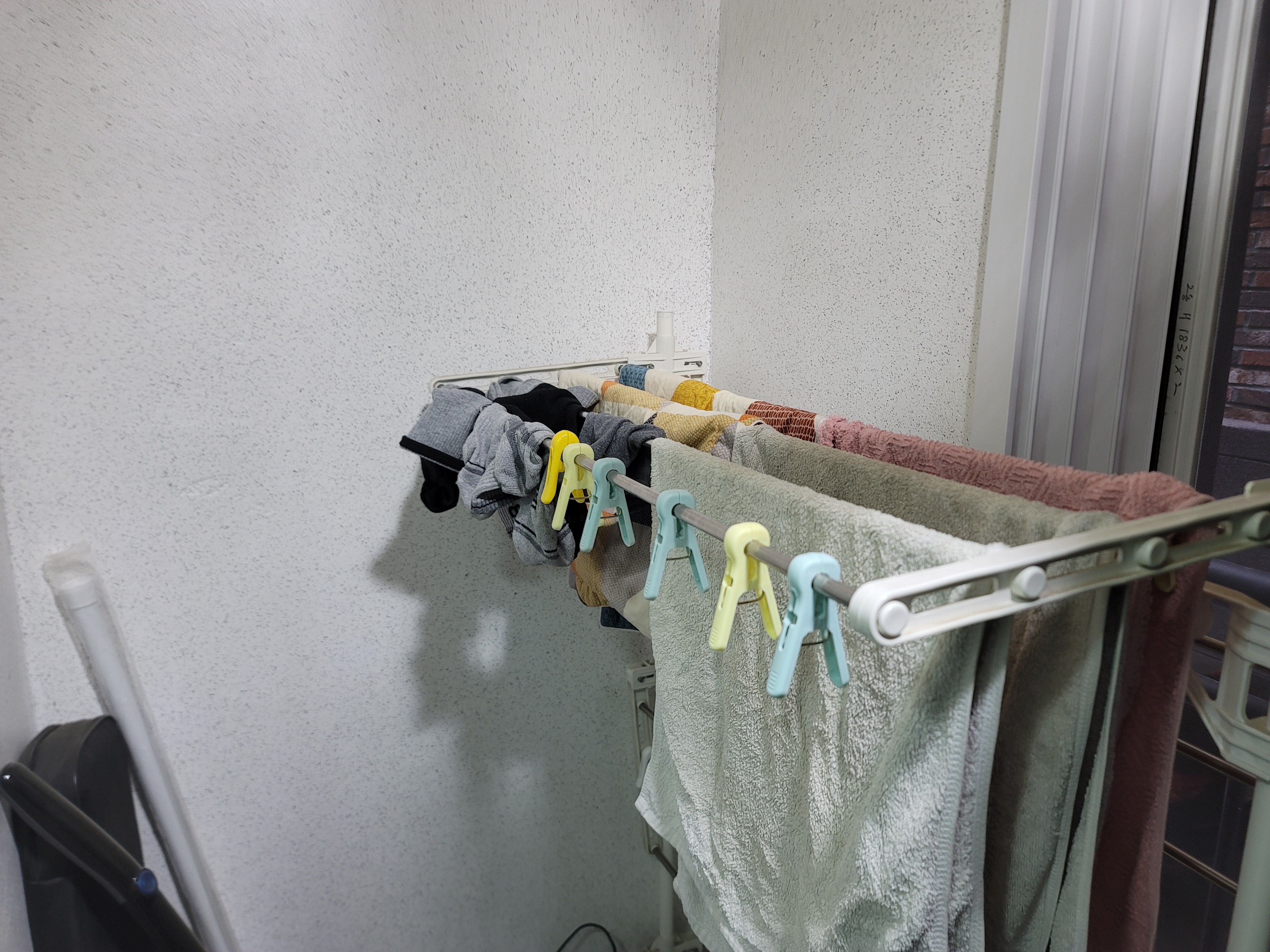 필자는 압축 커튼봉을 이용해서 거기에 빨래사냥을 걸 계획이었지만 압축 커튼봉 길이가 안 맞아서 ㅠㅠ