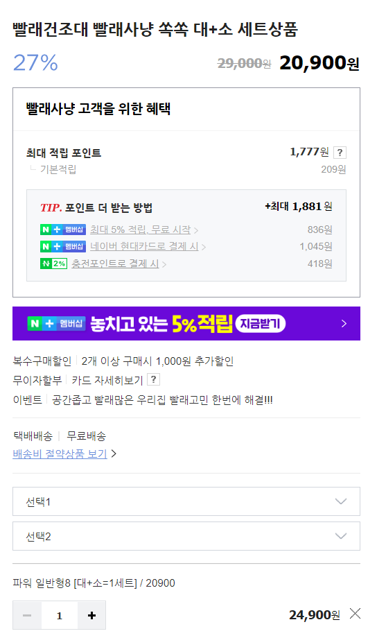 그러면 양말과 속옷, 바지, 수건을 걸건데 너무 건조대가 큰건 아닐까? 하는 고민에 검색해보다가 알게 된 빨래사냥