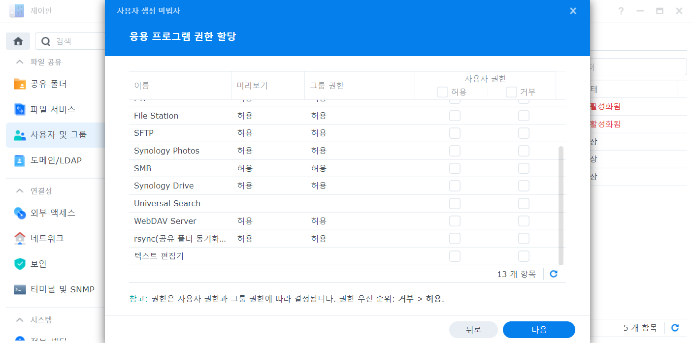 - 즉 새로운 프로그램을 설치하거나 새 폴더를 만들면 권한을 부여해야 접근이 가능하다