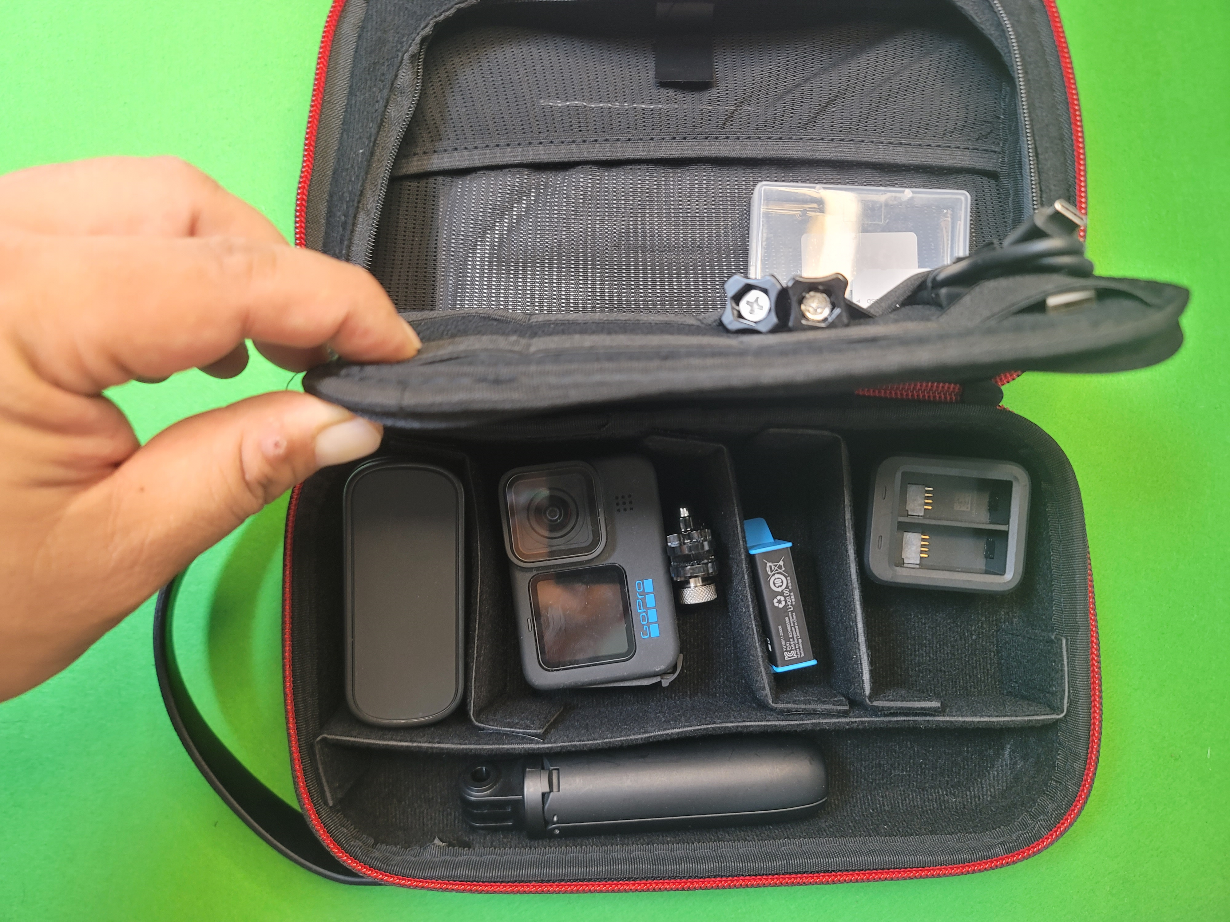 2단의 경우 지퍼로 공간이 나뉘기 때문에 아무거나 때려 박아놔도 고프로를 긁을 걱정은 없음