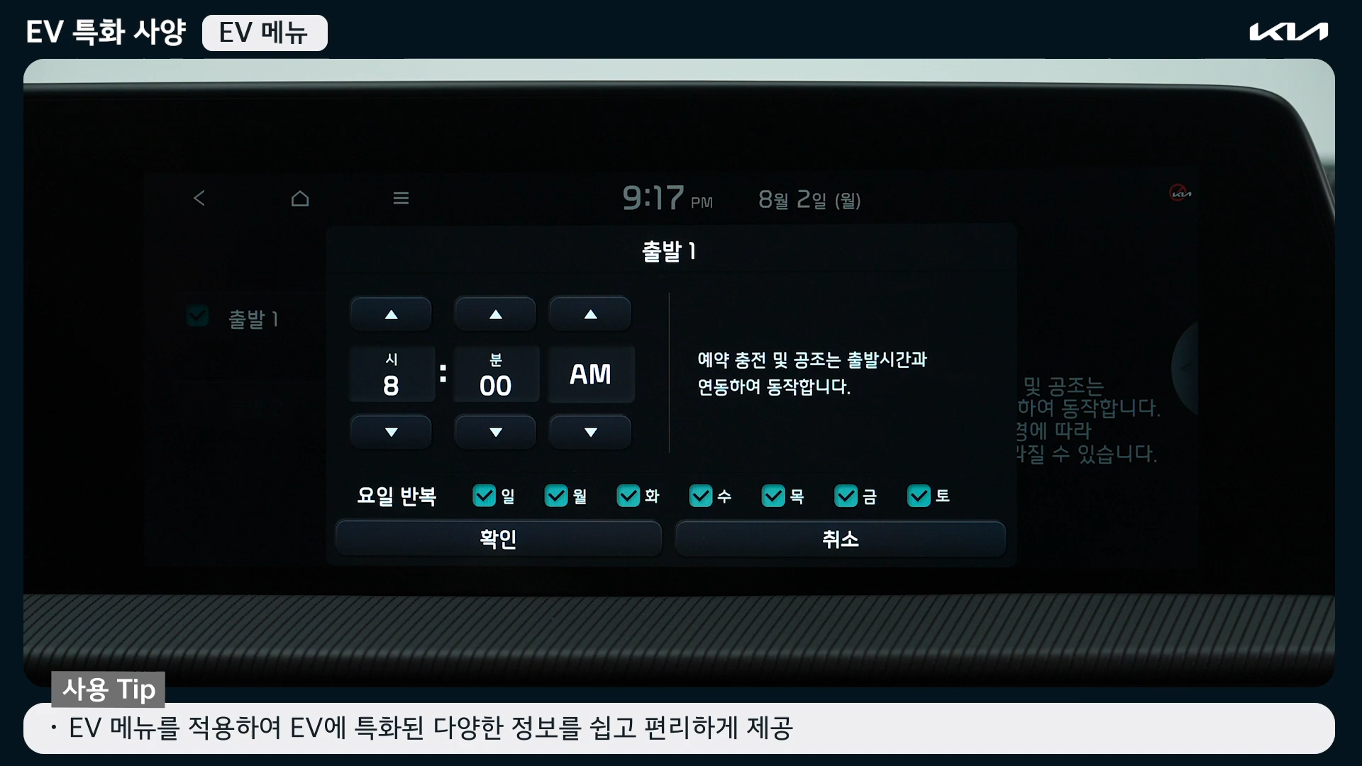 EV메뉴 하단에 '다음 출발 시간'을 설정한다.