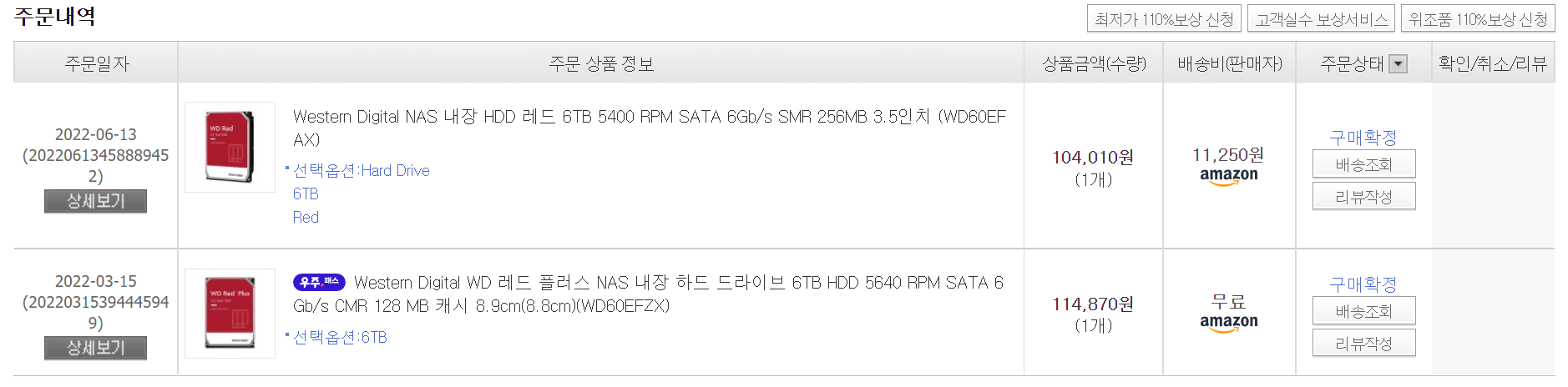의외로 WD RED 타임딜이 많이 보여서 과감하게 WD 제품을 구매하였습니다.