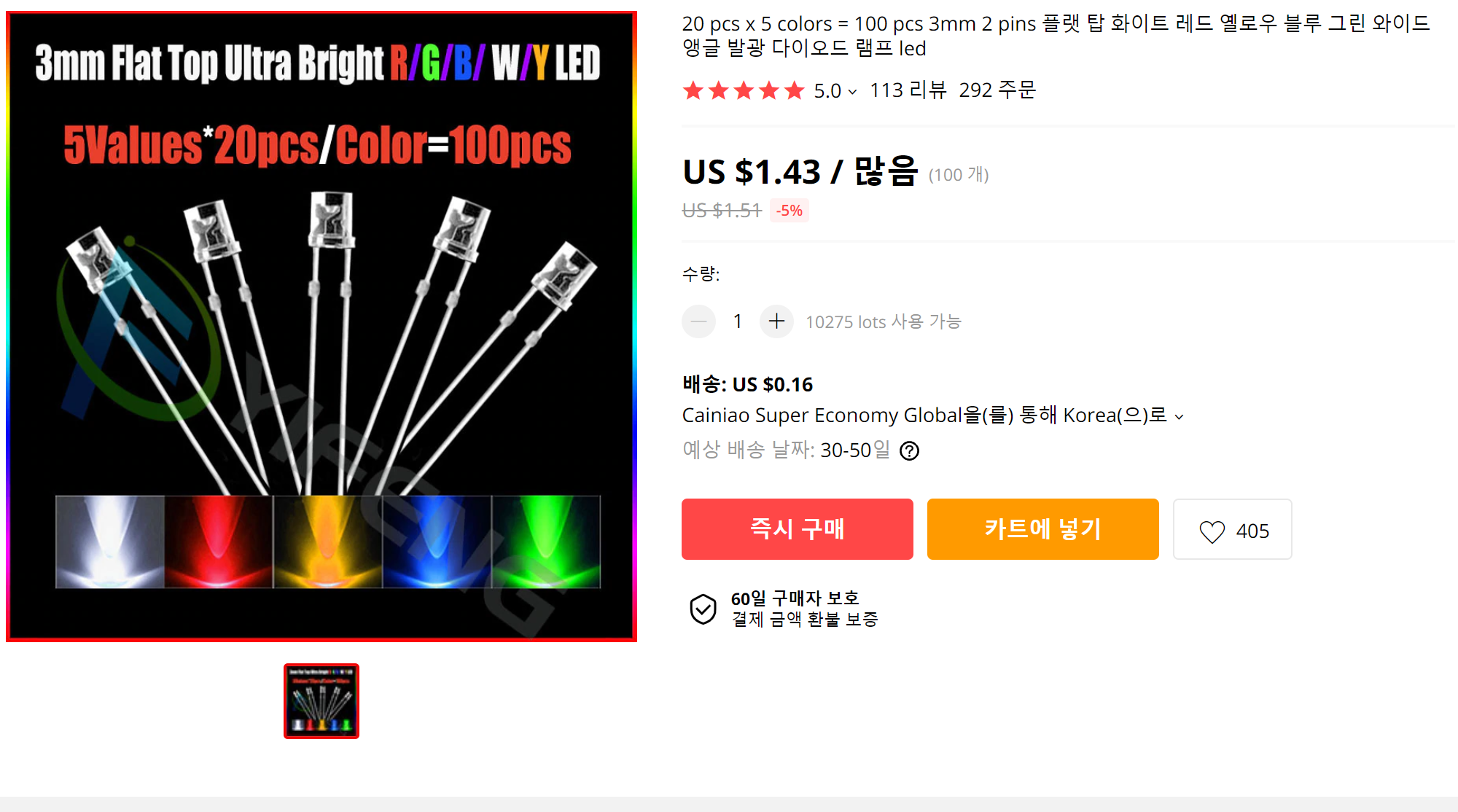 3mm 둥근 원형의 LED를 주로 사용했는데 다 떨어져 가서