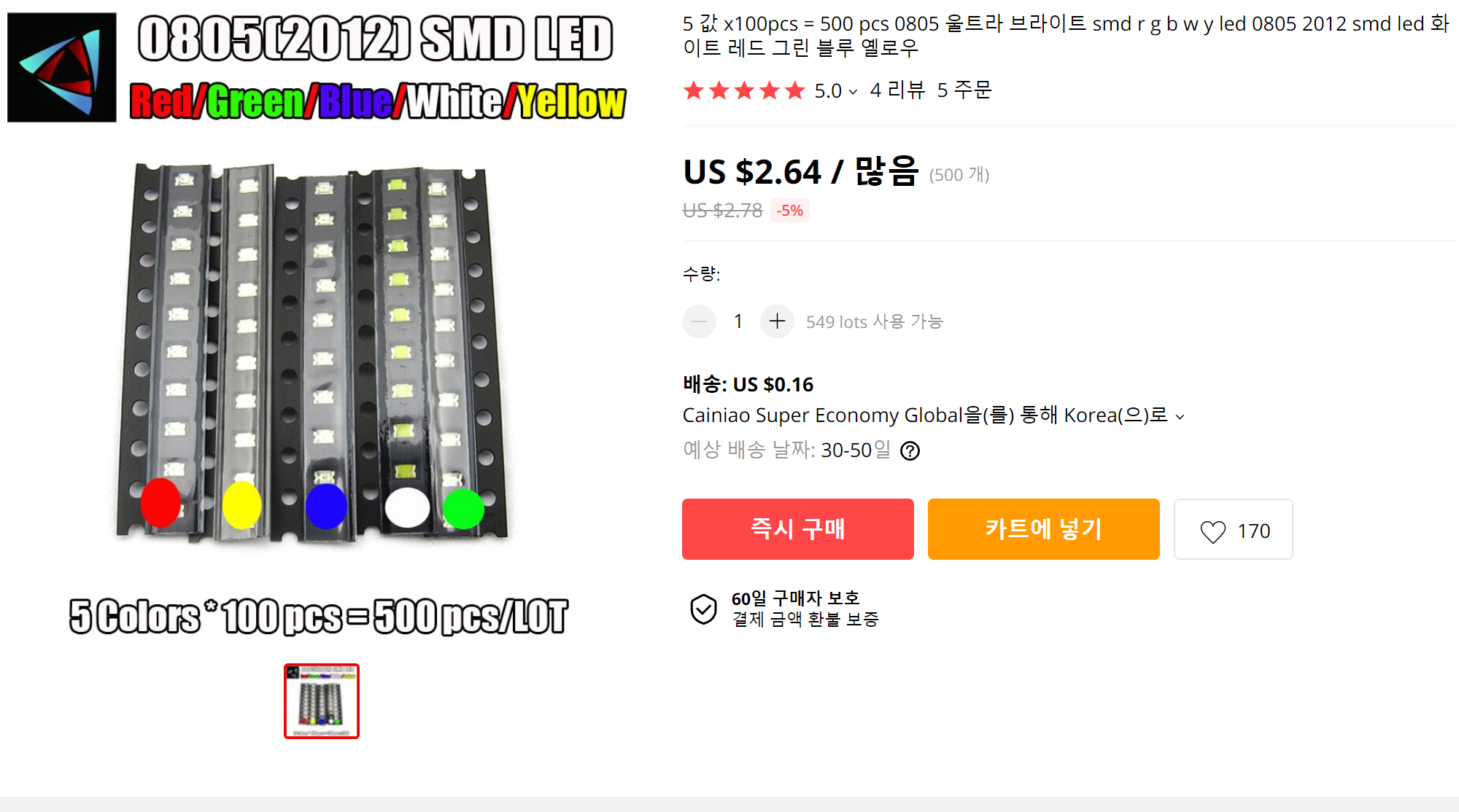 처음 도전해보기에.... 조금 더 큰 싸이즈의 LED로 구매