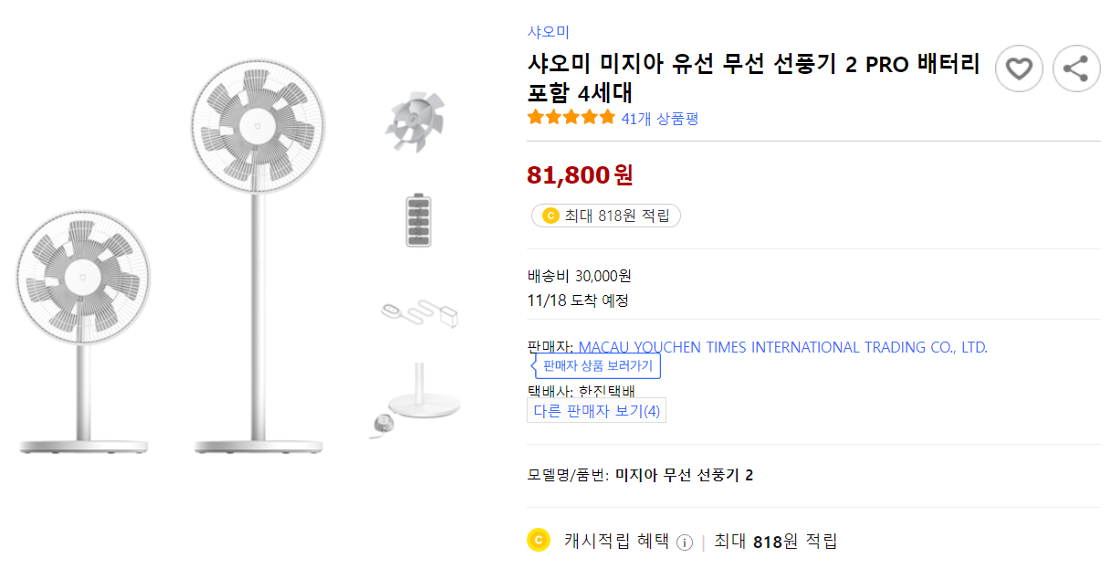 얼마전에 샤오미 스마트 스탠딩 선풍기2 프로 정발 기념으로 할인하길래 구매했었다