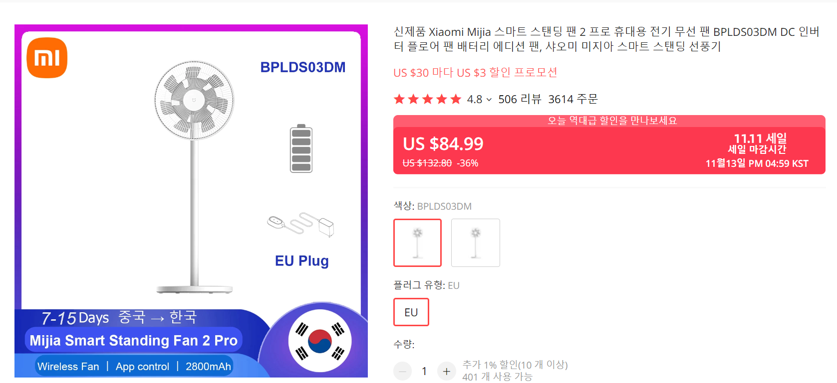 무선 충전 너무 좋다!!!(이미지출처 - 알리익스프레스)정발로 살 수 있는 샤오미 선풍기