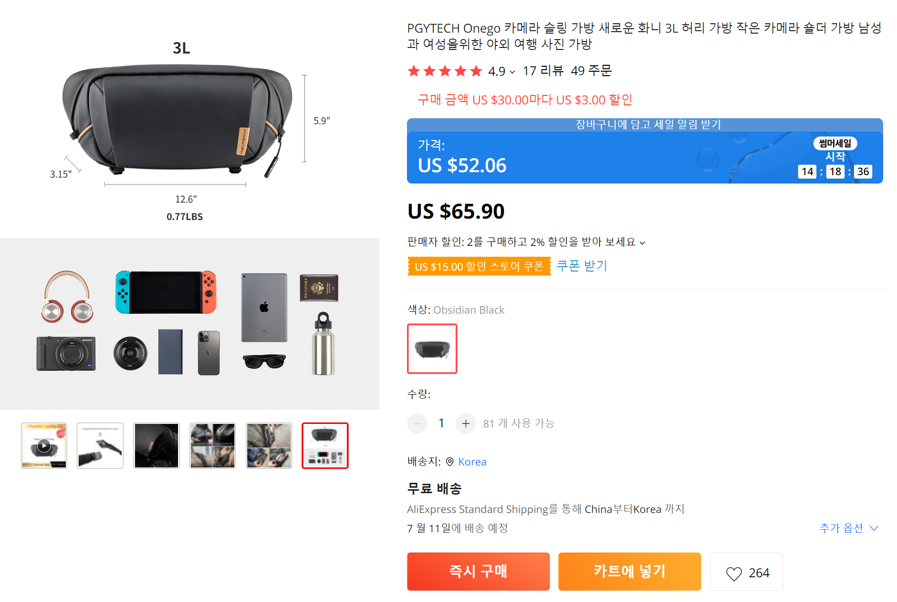 슬링백 구매 목적은 '고프로'를 들고 다니고