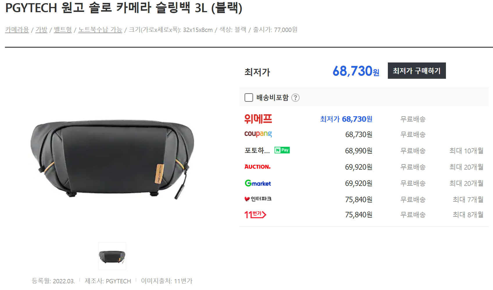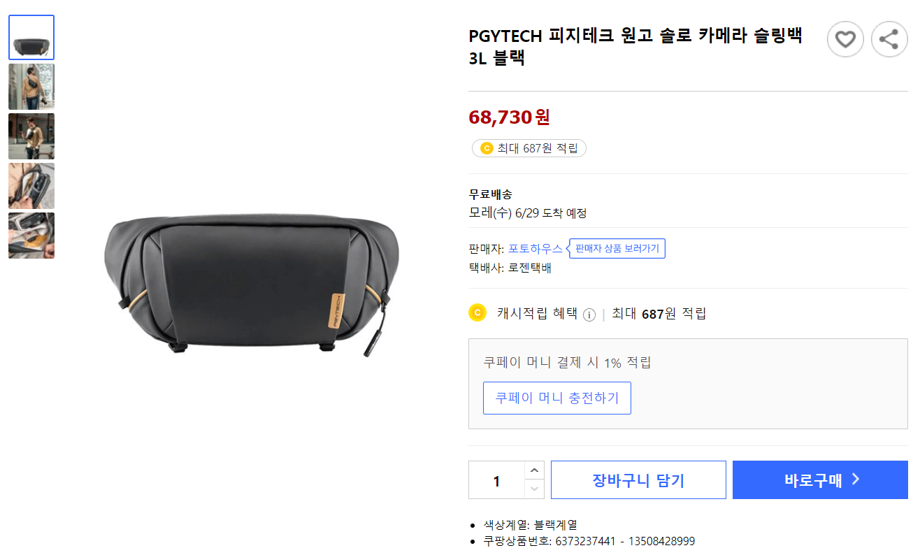 PGYTECH Onego 3L 슬링백 / 카메라 가방 by 쿠팡