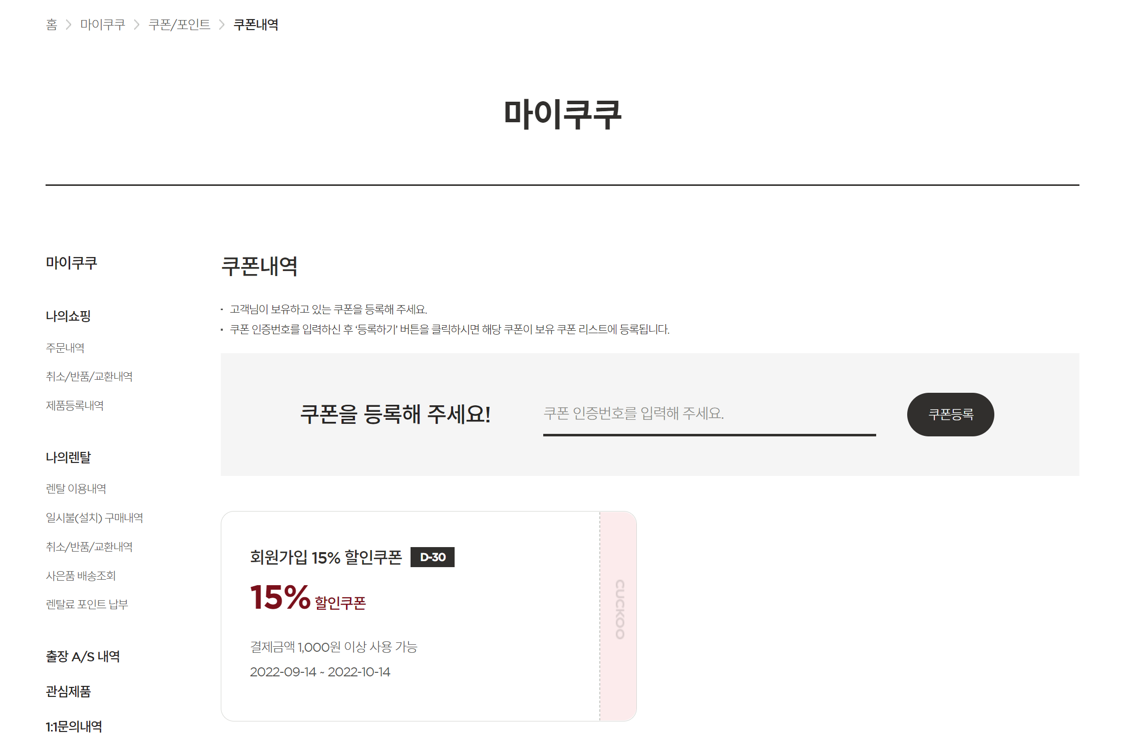 최종] KHTS1060FD / 쿠쿠 홈페이지 기획전으로 구매 완료