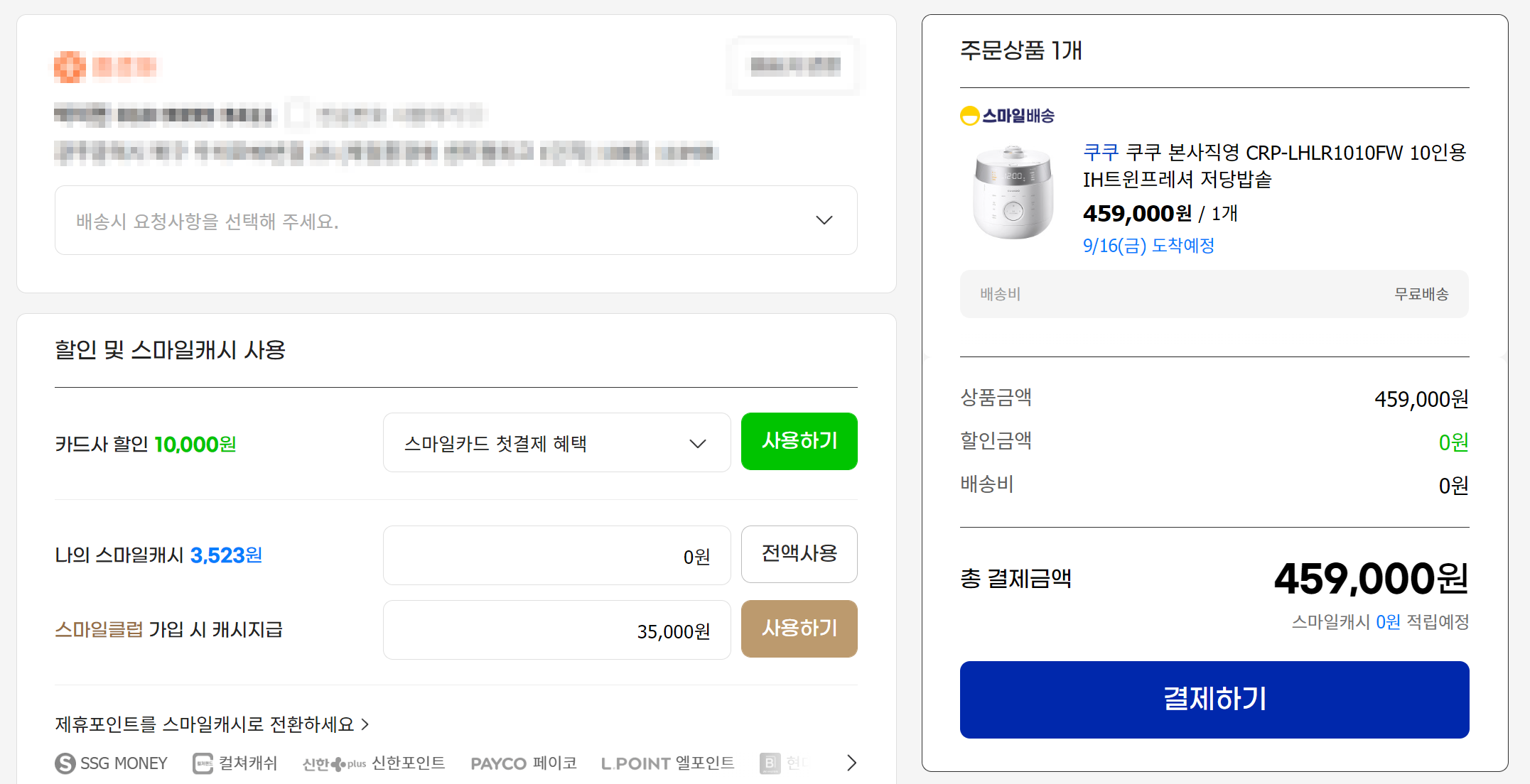 쿠폰도 등록해서 구매버튼을 누르기 전에...