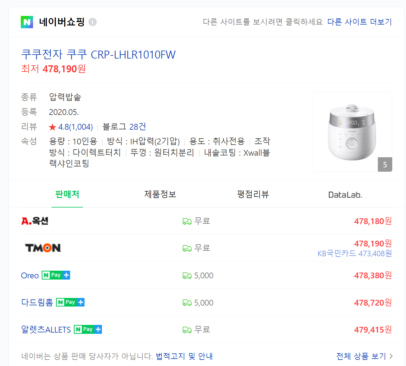 [여담] 필자의 검색결과로는 저당밥솥은 복병 지마켓이 승리했지만