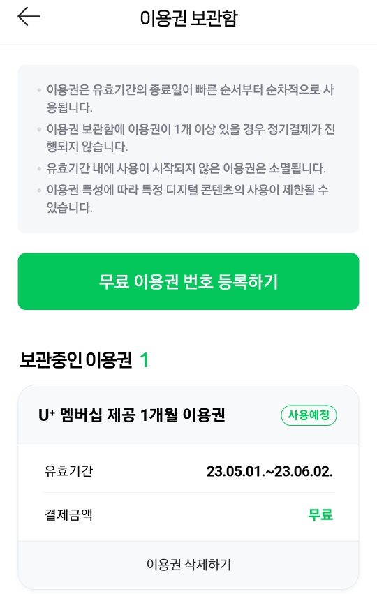 1개월 무료이용권이라 까먹지말고 매달 해야한다는 점은 조금 귀찮지만요
