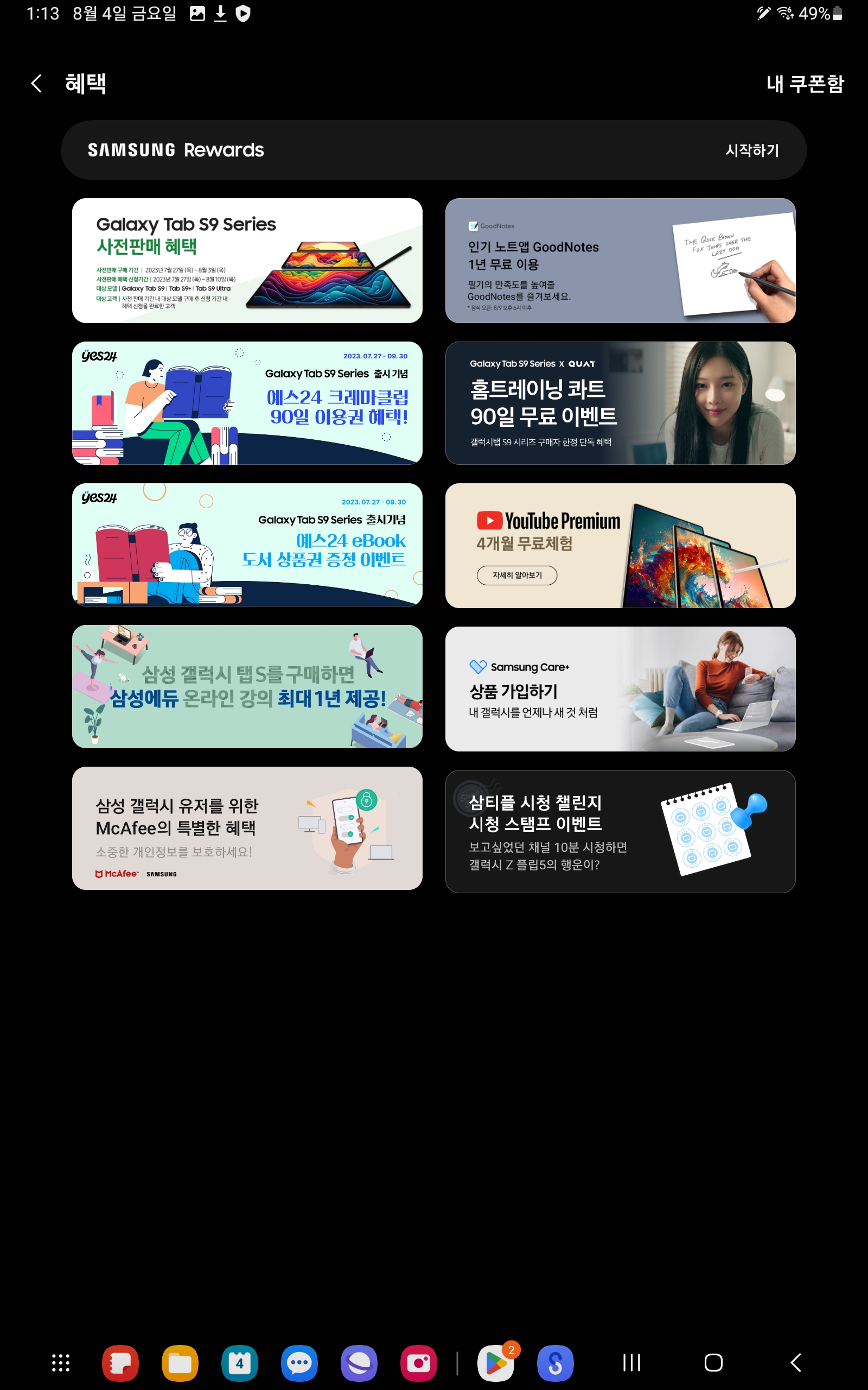 작은 화면 태블릿에 익숙해지다 보니 굳이 큰 태블릿의 필요성을 못느끼겠어서... S9를 선택함