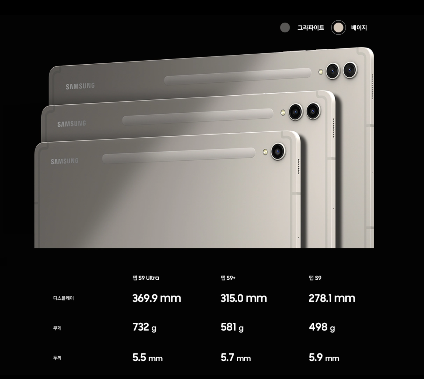 탭S9부터는 아몰레드 디스플레이 같이 탑재되어서