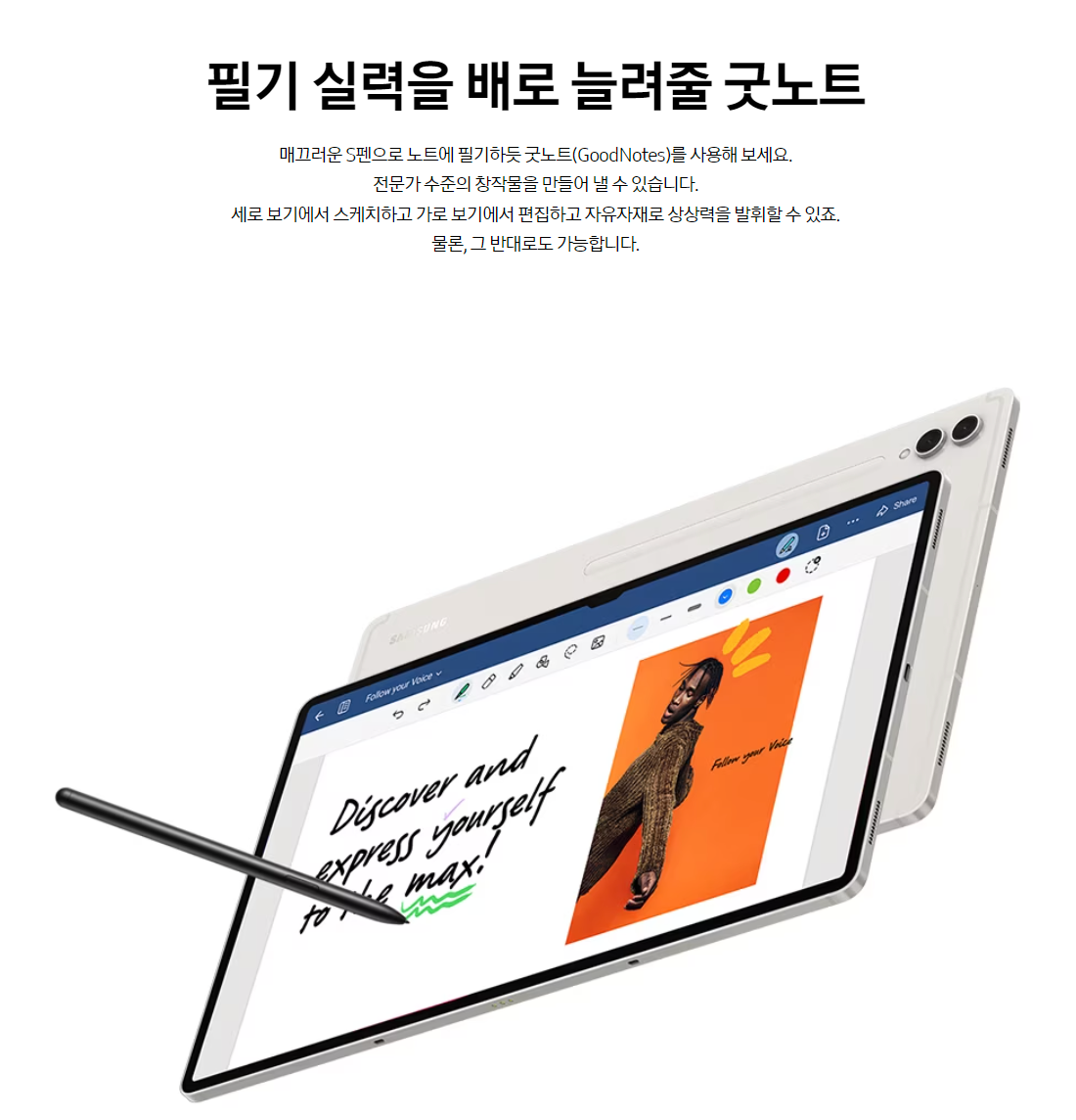 작은 화면 태블릿에 익숙해지다 보니 굳이 큰 태블릿의 필요성을 못느끼겠어서... S9를 선택함