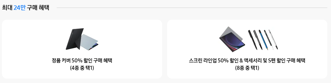 지금 탭을 구매해도 액서사리 할인 구매 혜택이 있는데