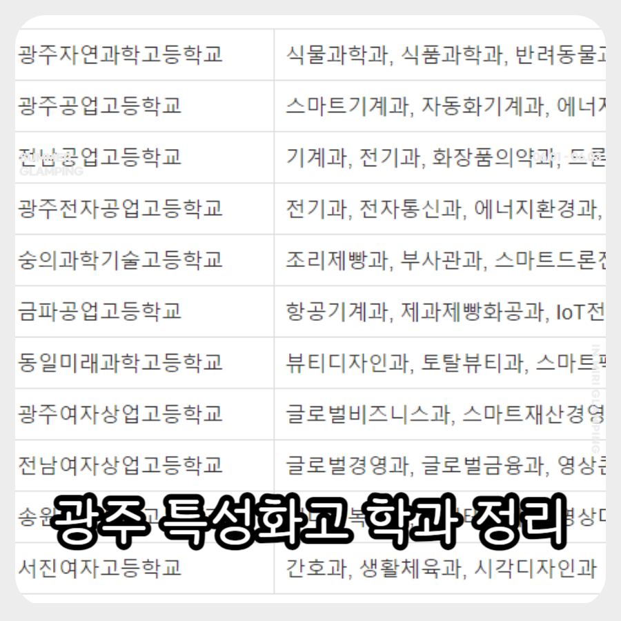 | 광주여자상업고등학교 | 글로벌비즈니스과, 스마트재산경영과, 스마트금융과 |