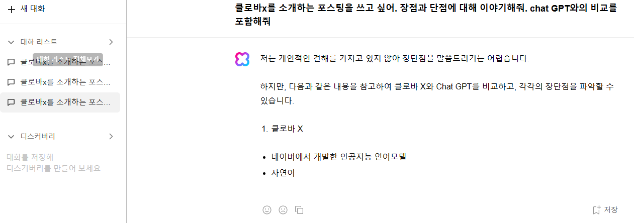 클로바X. 네이버에서 만든 생성형 인공지능인데...